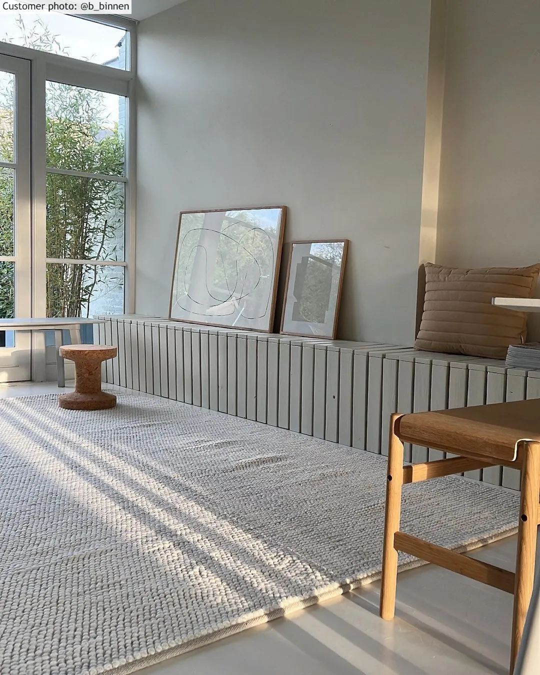 Alfombra tejida en plano de lana. Alfombra de lana con un corte fino y bonito. Excelente calidad. Fácil de mover. Queda estable y plana sobre el suelo. Transmite una sensación de etnicidad.
