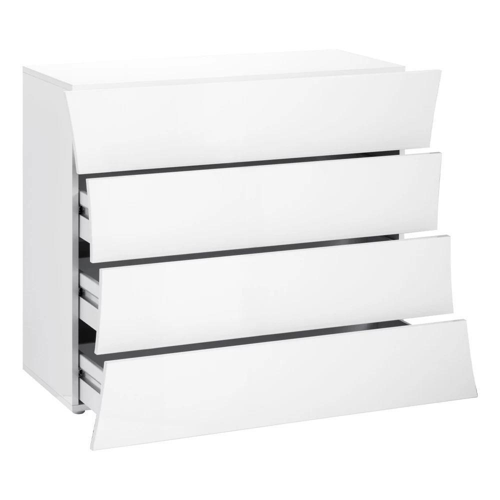 Fabricada en robusta y resistente madera sostenible de melamina pintada en blanco brillo con colores ecológicos, se compone de 4 cajones para máxima funcionalidad .
