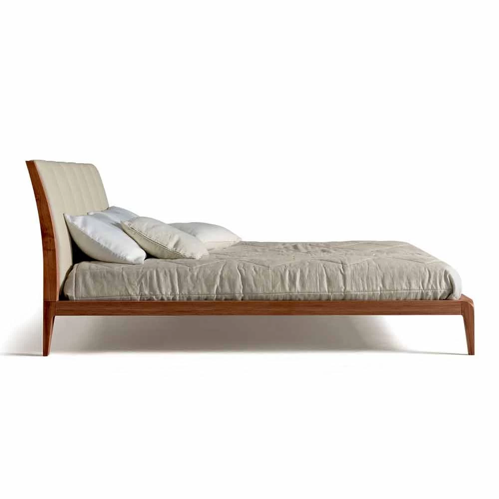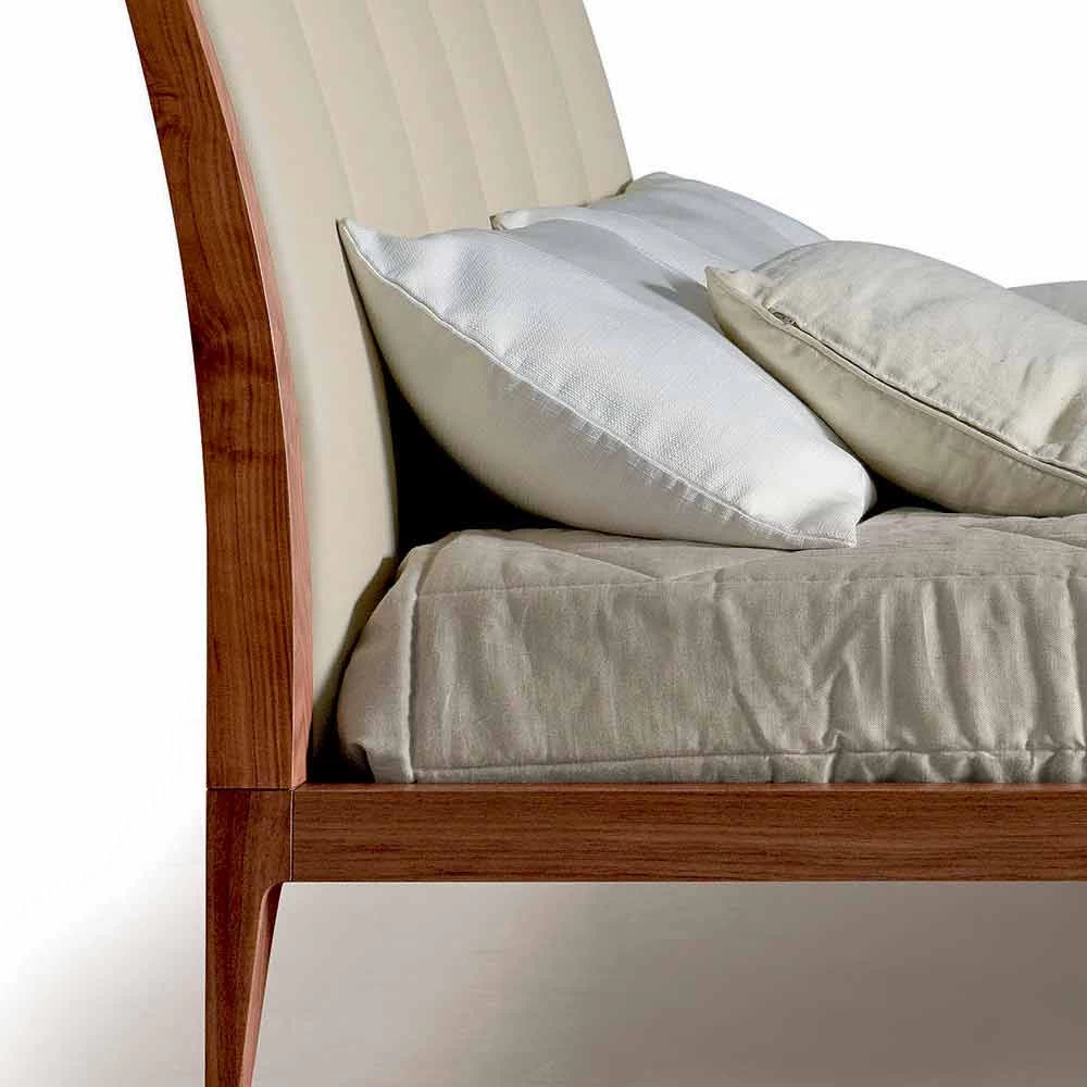 Cama doble con estructura en nogal y cabecero tapizado en piel. Esta cama es adecuada para una red de 160×200 cm ( red no incluida ). Seleccione el acabado y el color que desee en el menú desplegable.