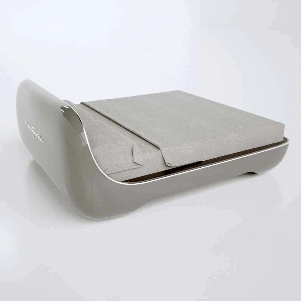 Cuando sigues soñando aunque estés despierto… Una cama futurista y envolvente con una carcasa realizada íntegramente en Solid Surface; ideal en un loft y también colocado en el centro de la habitación. Avantgarde hace un guiño a los deportivos de nuestro tiempo tratando de plasmar lo mejor de sus líneas futuristas y sus finos acabados, que se encuentran en su cabecero acolchado y tapizado en piel o en la cenefa opcional en color plata o en el color elegido por el cliente .