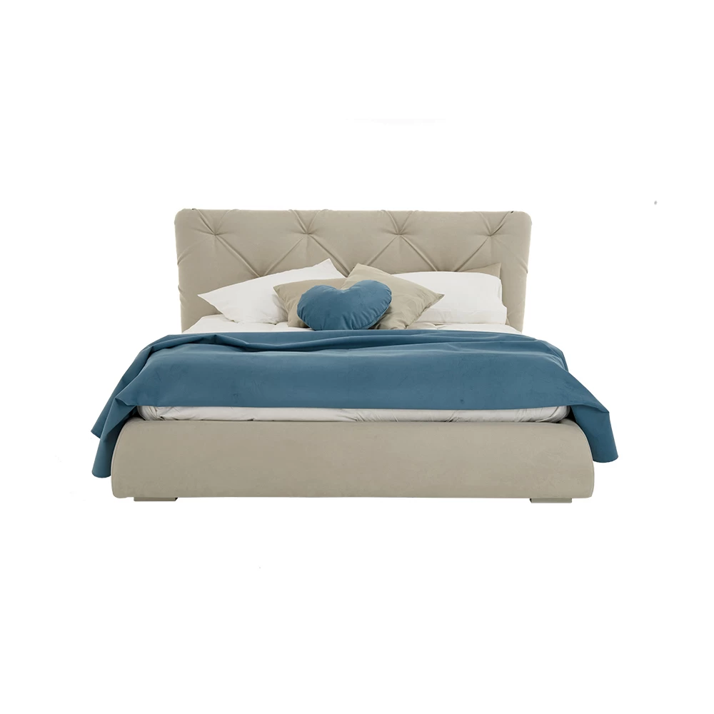 Esta cama está equipada con un gran contenedor con base elevable, que es la solución ideal para optimizar el espacio, manteniendo el dormitorio siempre ordenado. Dentro de la caja se pueden guardar mantas, ropa, almohadas, etc.