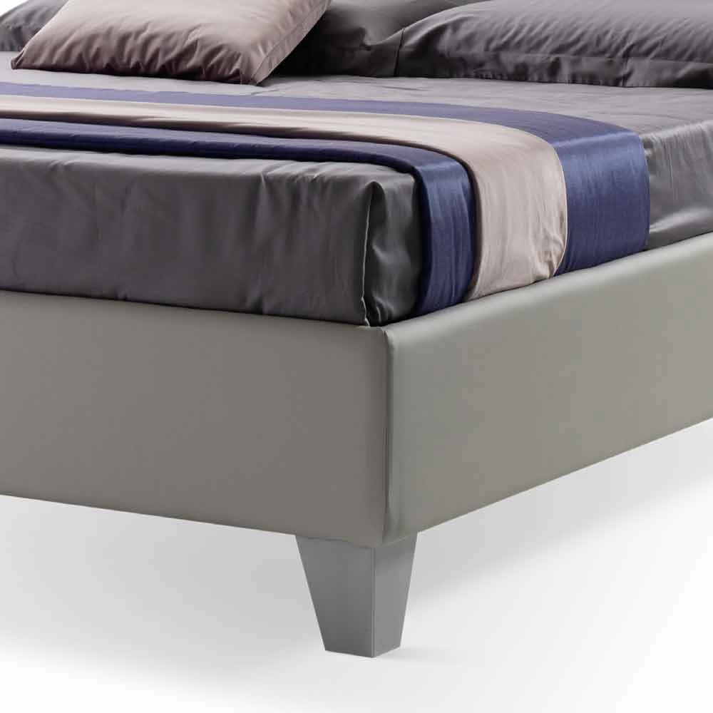 Cama doble con cómoda acolchada de alta calidad hecha a mano en Italia en cuero ecológico.