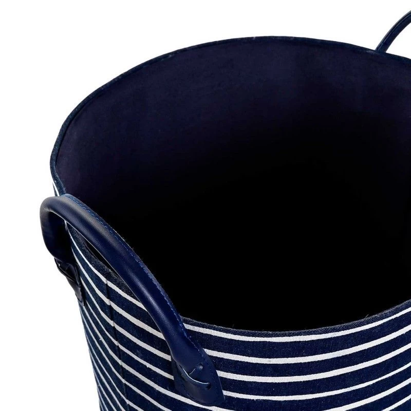 Cesto fabricado en poliéster con diseño de rayas, disponible en dos modelos diferentes a elegir. Cestos originales y funcionales, de diseño marinero o étnico, elige el estilo que mejor encaja con tu decoración.