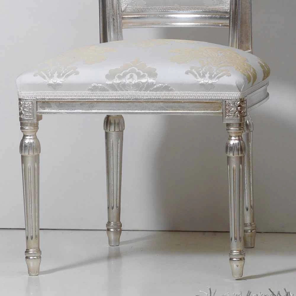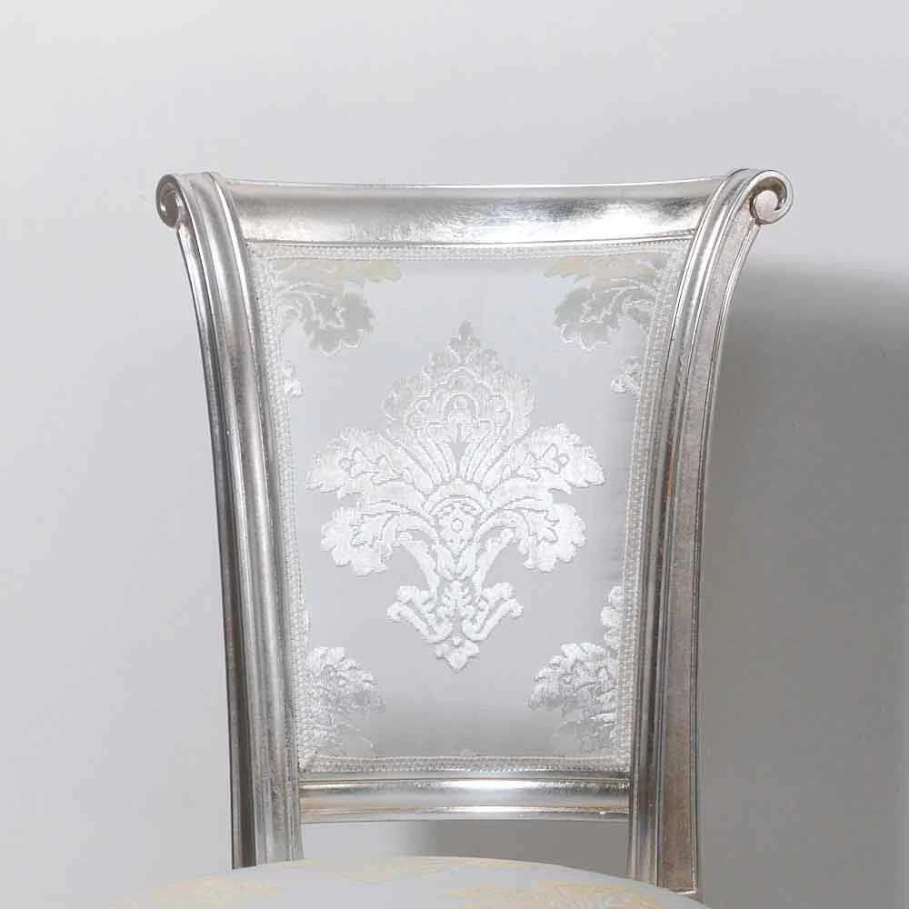 La silla de Miel es ideal para aquellos que desean presentar en el estilo clásico de sus entornos. Es una silla por el magnífico diseño cuenta con un artesanal hecha con materiales de alta calidad y el uso de la experiencia de hábiles artesanos italianos. La estructura es de madera acabado en pan de plata. El asiento y el respaldo están tapizados en terciopelo italiano trabajó tela de color marfil, como Puccini. Made in Italy.