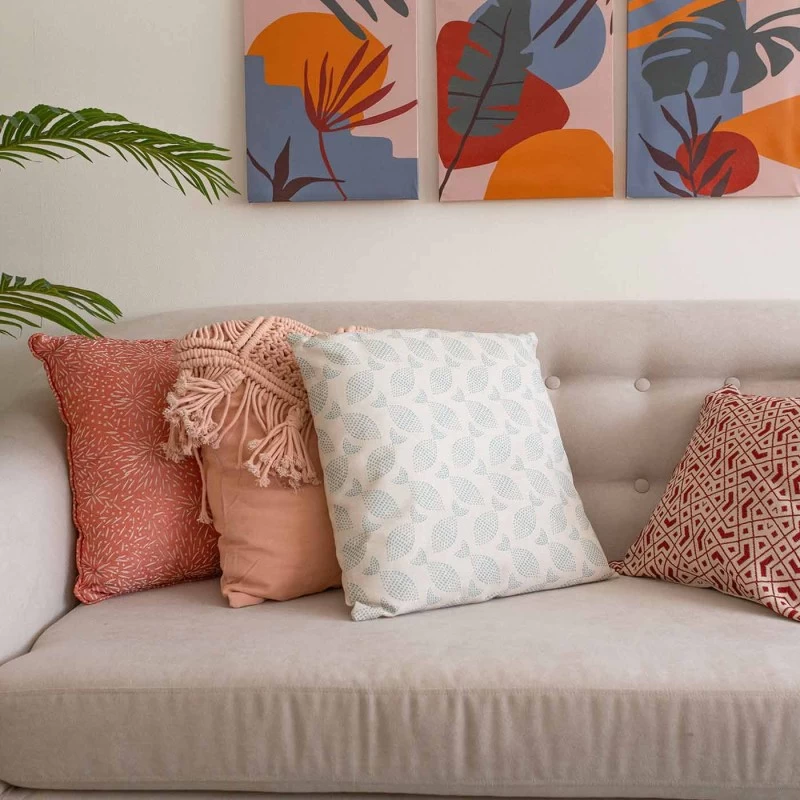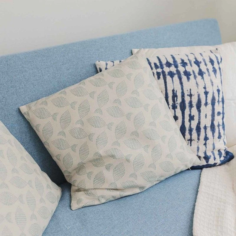 Cojín con relleno fabricado en poliéster en color beige con peces en color azul. Crea un ambiente mediterráneo en tu espacio con este elemento decorativo. Capaz de renovar cualquier estancia y aportar un aire nuevo. ¿Ya tienes su sitio pensado?