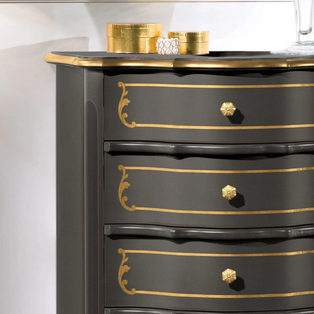 Cómoda de dormitorio con 5 cajones en madera clásica Made in Italy.
