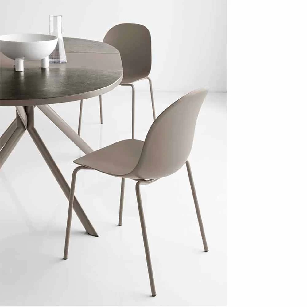 modelo Academia Silla con cáscara hecha de polipropileno (polimerocomposito estructural con carga mineral) impreso en co-inyección con 35% de material reciclado. La forma del asiento es una búsqueda de formas simples y sinuosas adecuados para cualquier ambiente y situación. Los madre 4 patas está hecho de tubo de metal.