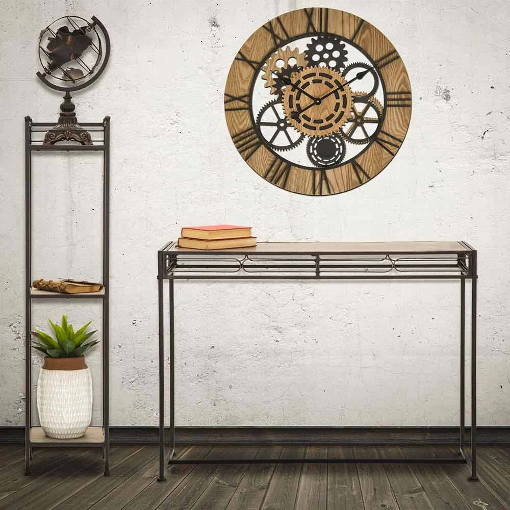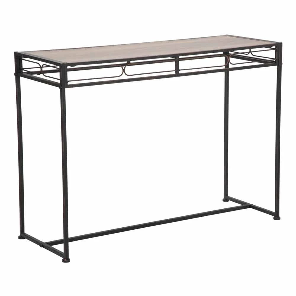 Mesa consola para salón de diseño moderno fabricada en hierro y MDF.