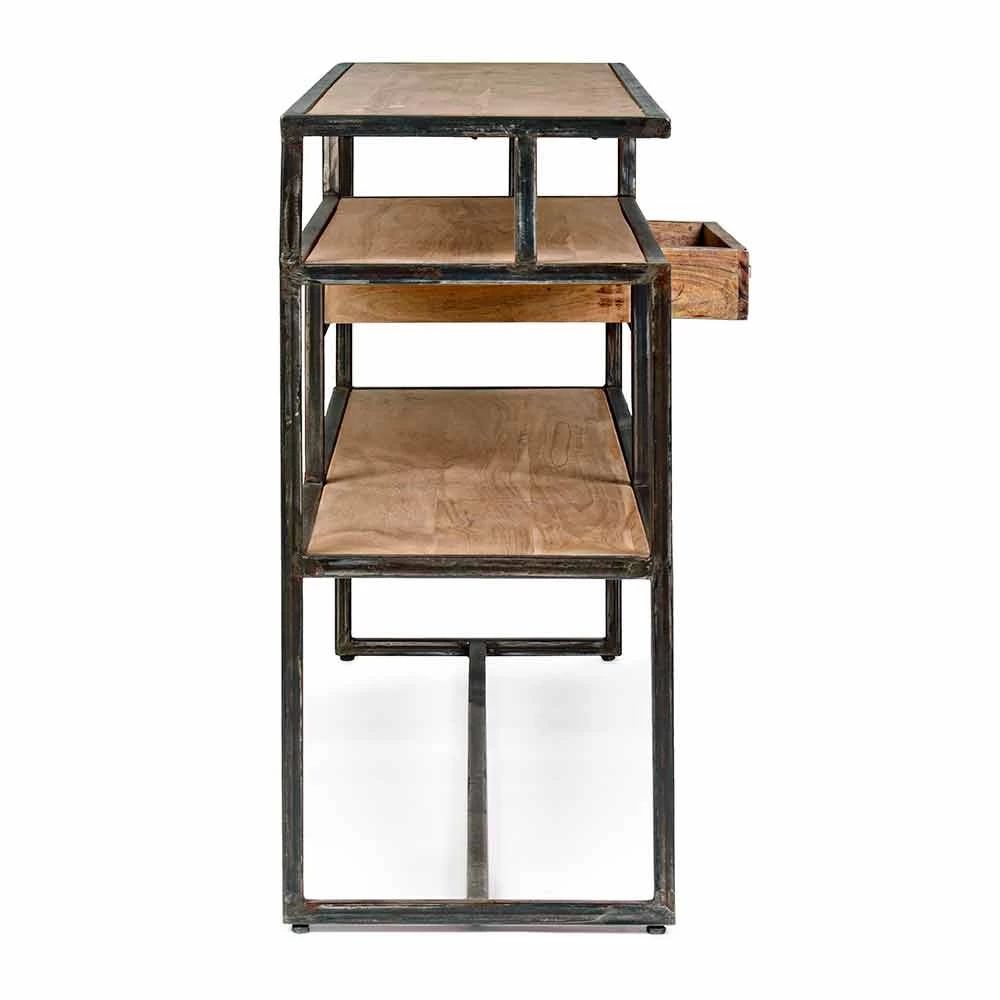Consola de diseño en acero y madera de acacia con cajón, estilo industrial.