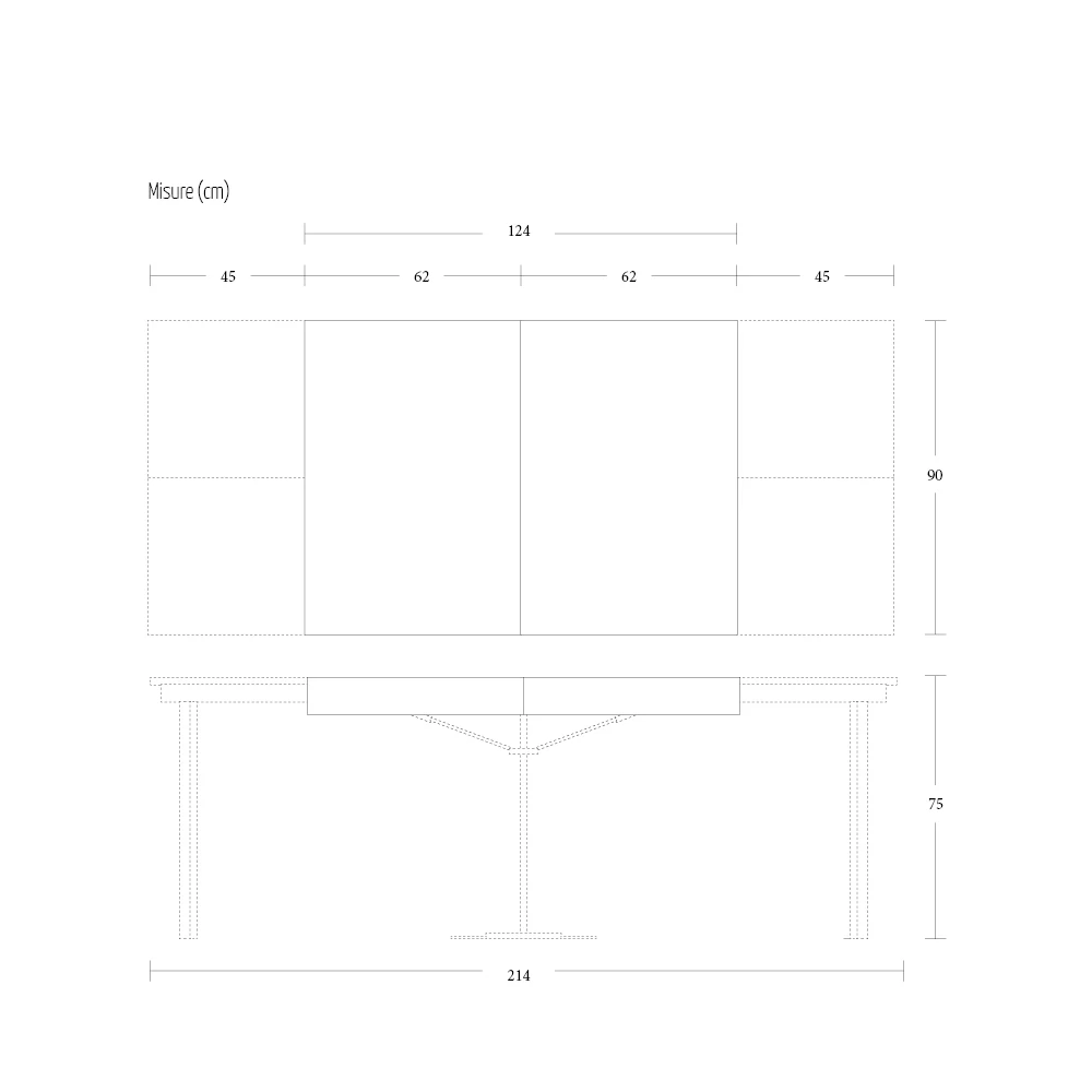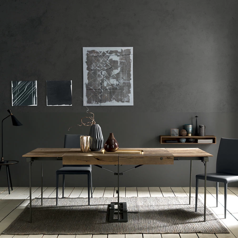 Consola extensible hasta 214 cm con tapa en madera maciza o melamina Made in Italy.