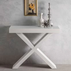 Consola extensible moderna fabricada en melamina plegable . Su peculiaridad está representada por la posibilidad de extenderse hasta una longitud máxima de 195 cm gracias a 3 extensiones externas de 50 cm cada una del mismo color que el tablero, permitiendo así convertirse en una mesa de comedor práctica y funcional cuando sea necesario y para volver a cerrarse fácilmente para ocupar un espacio mínimo garantizando así una perfecta optimización del espacio. Su estructura se caracteriza por líneas simples y esenciales que le permiten insertarse en cualquier contexto de decoración en el que logre adaptarse, cubriendo un papel tan funcional como decorativo y de diseño.