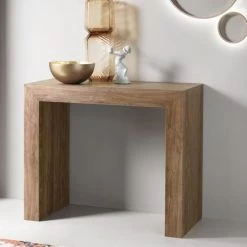 Consola extensible realizada en laminado efecto madera , íntegramente Made in Italy . Un mueble de estética minimalista y formas esenciales que se adapta perfectamente a cualquier situación de decoración gracias a su marcada versatilidad de uso. Su conformación la hace ideal para colocarla en la entrada o en el interior de la sala de estar y, gracias a las cinco extensiones centrales de 50 cm cada una, se transforma fácil y rápidamente en una moderna mesa de comedor con una longitud de 295 cm, lo que le permite para alojar hasta 12 personas para comidas y cenas con amigos. Una vez cerrado, vuelve a ocupar el mínimo espacio, demostrando ser especialmente práctico y funcional , ideal para quien busca una solución capaz de optimizar el espacio.
