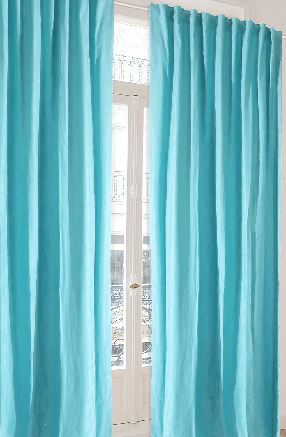 Disponible en tonos monocolor clásicos y en modernos estampados. La cortina Ofelia es azul y está disponible en varios otros colores y aspectos para que pueda decorar según su estilo específico.