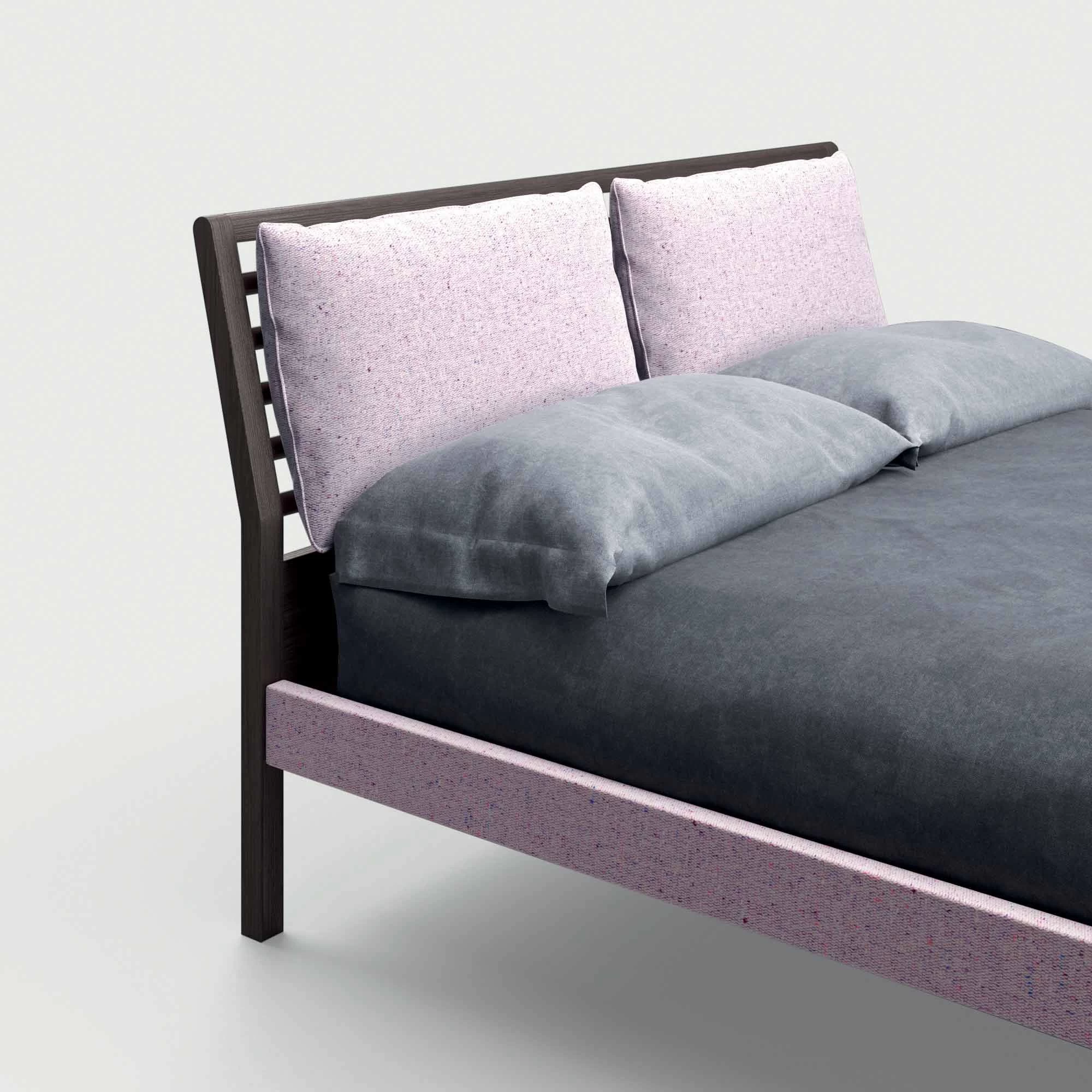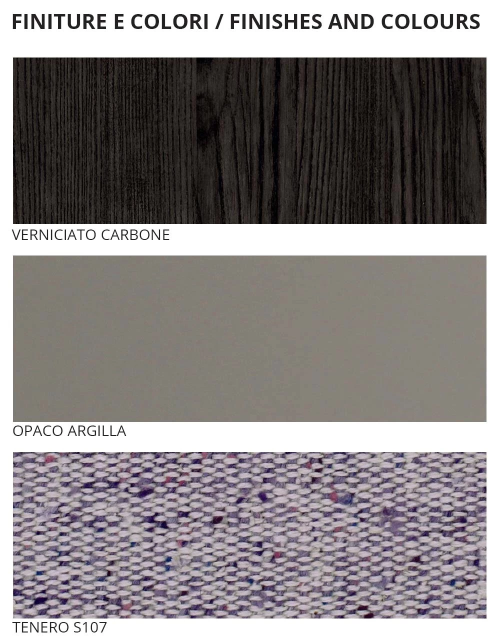 Mobiliario de dormitorio compuesto por 5 elementos 铆ntegramente fabricados en Italia . La composici贸n incluye una cama doble de madera te帽ida de carb贸n con armaz贸n de cama tapizado en tela a juego con los dos cojines que cubren la cabecera, mesita de noche de dos cajones de madera te帽ida de carb贸n, c贸moda larga / mesita de noche en laca de arcilla mate, c贸moda alta (compuesta por 5 elementos modulares) y c贸moda con 6 cajones (compuesta por 6 elementos modulares) en madera te帽ida carb贸n y lacado arcilla mate. Del cuidadoso an谩lisis de diferentes formas, vol煤menes y tama帽os, nace un ambiente fresco y joven , caracterizado por una cama suave y confortable que asegura un descanso de calidad . Su est茅tica se combina con los dem谩s elementos de la composici贸n para una refinada armon铆a de estilos y tonalidades de color que iluminan el ambiente nocturno a la vez que ofrecen la posibilidad de personalizar las soluciones de decoraci贸n gracias a un sistema modular que permite adaptar el espacio a cada uno. necesidad y dar rienda suelta a su creatividad y gusto personal.
