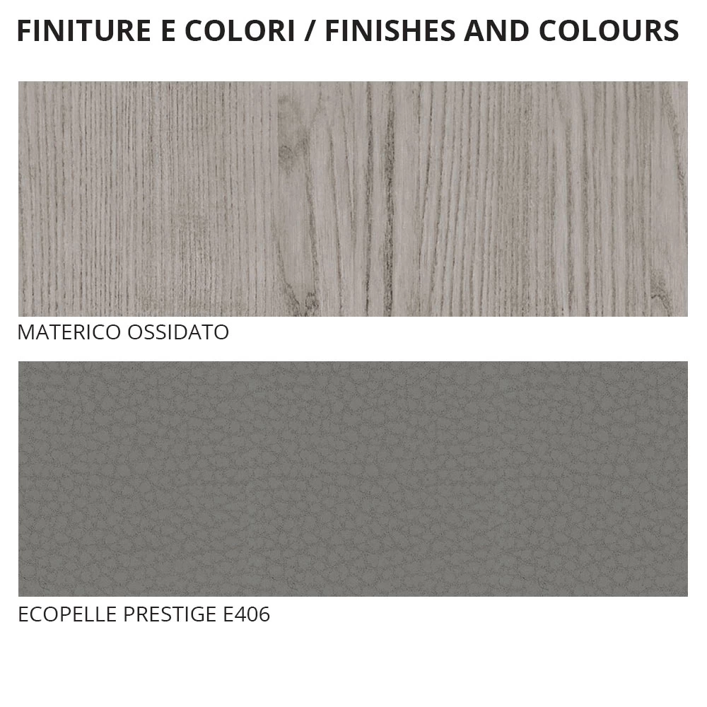 Dormitorio doble completo compuesto por 4 elementos íntegramente fabricados en Italia . La composición incluye una cama de matrimonio con estructura de madera con acabado de material oxidado y un cabecero con panel acolchado revestido en ecopiel, 2 mesitas de noche de 2 cajones cada una y una cómoda de 3 cajones del mismo material y acabado que la estructura de la cama. Un mobiliario acabado capaz de completar dormitorios con una estética moderna y refinada, ideal para quienes aman enriquecer sus espacios domésticos con un toque de clase . La maravillosa armonía entre los acabados y texturas elegidos crea una atmósfera particularmente acogedora subrayada por la elegante veta de la madera que envuelve toda la habitación para un resultado exclusivo con un fuerte impacto visual sin dejar de ser un estilo sobrio y esencial .