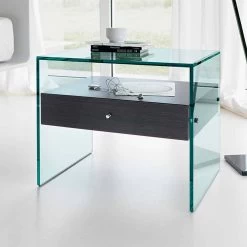 Mesa De Centro O Mesita De Noche Para Sofá En Base De Espejo De Vidrio Extraclaro – Linzy