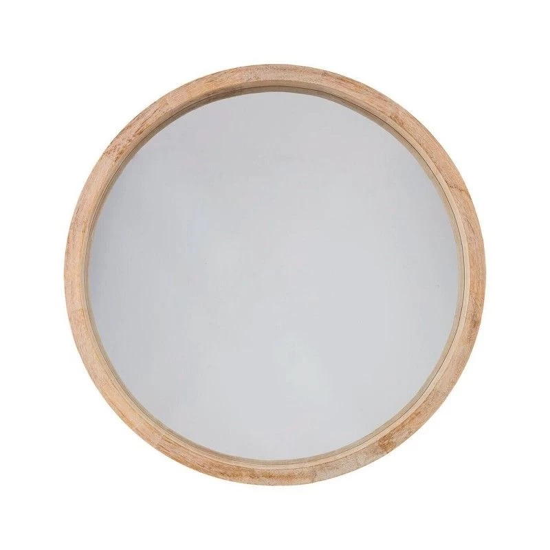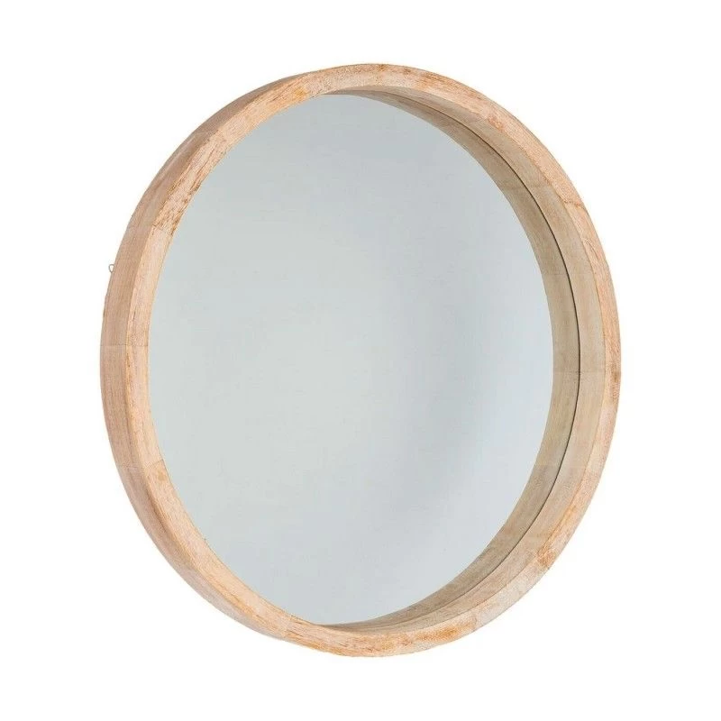 Espejo redondo de 50cm de diámetro con marco fabricado en madera. Un diseño sencillo y elegante, ideal para cualquier estancia y cualquier estilo. ¡Una apuesta segura!