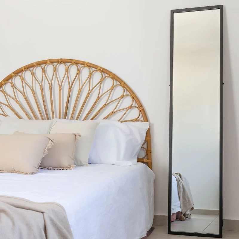 Espejo de pie fabricado en metal de color negro de 160cm. Añade una alfombra, un banco o un puff y colócalo en la esquina de tu dormitorio. Crearás un rincón vestidor digno de revista. Con un estilo industrial diseñado para triunfar.