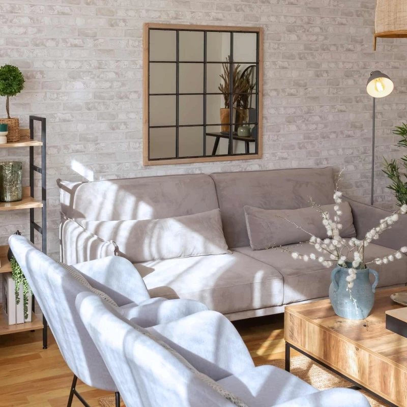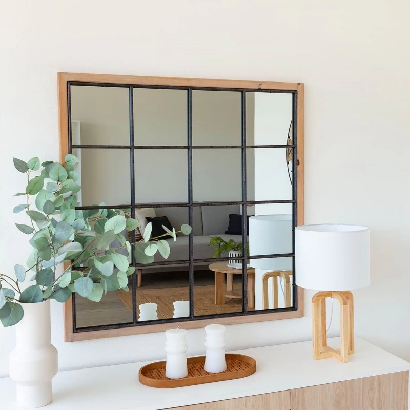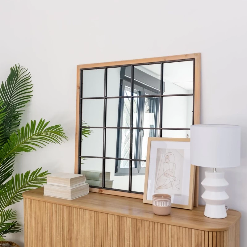 Espejo ventana fabricado en madera de pino de 90cm. Dale un toque de elegancia a la decoración de tu hogar consiguiendo un estilo retro/vintage y gana luz en tu estancia gracias a sus grandes dimensiones. ¡Estos espejos cuadrados son lo que estabas esperando!