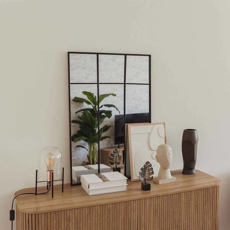 Espejo ventana fabricado en metal de color negro de 89cm de altura. Un diseño que se integra fácilmente desde estilos más modernos e industriales hasta estancias más clásicas y vintage. Amplía tu espacio con la gran versatilidad de esta pieza y potencia tus rincones favoritos.