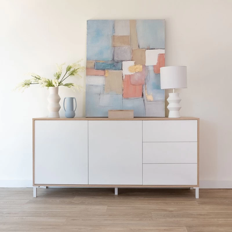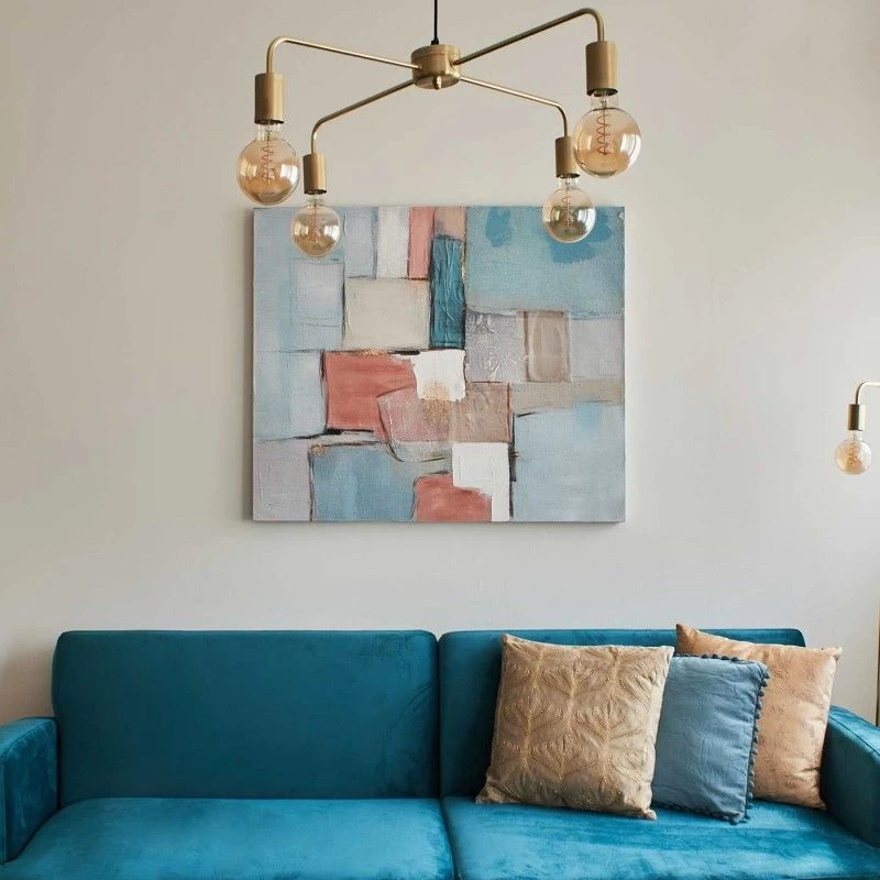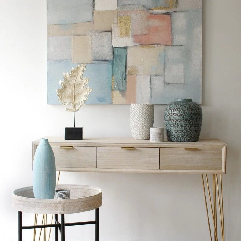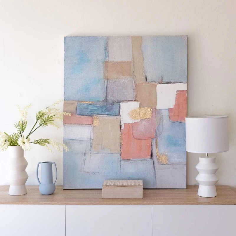 Lienzo de 100x80cm con diseño abstracto en colores pastel con detalles dorados. Lienzo perfecto para esa pared a la que quieres sacarle carácter y personalidad. Un cuadro de grandes medidas que te permitirá vestir tu pared sin añadir nada más. ¿Te encanta tanto como a nosotros?