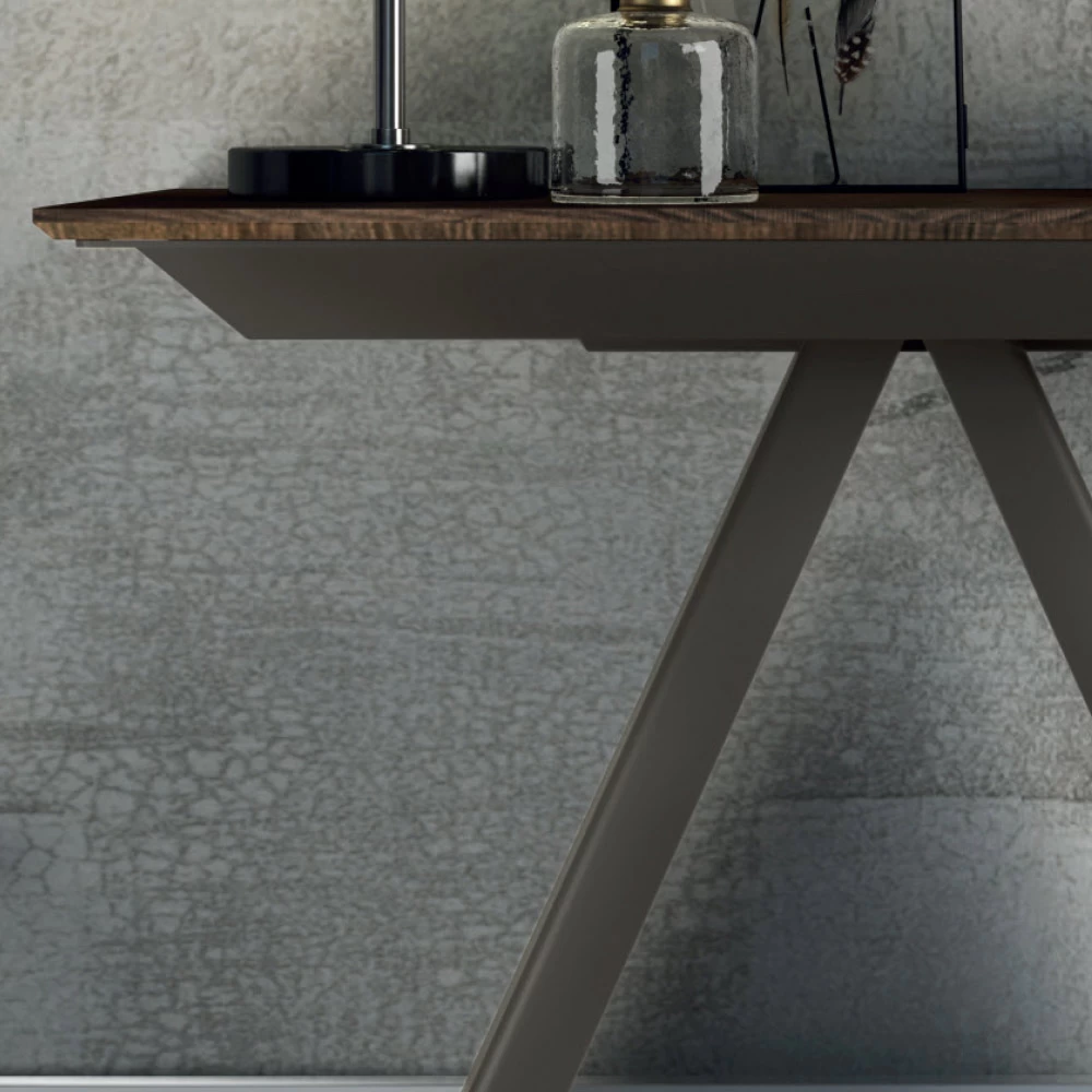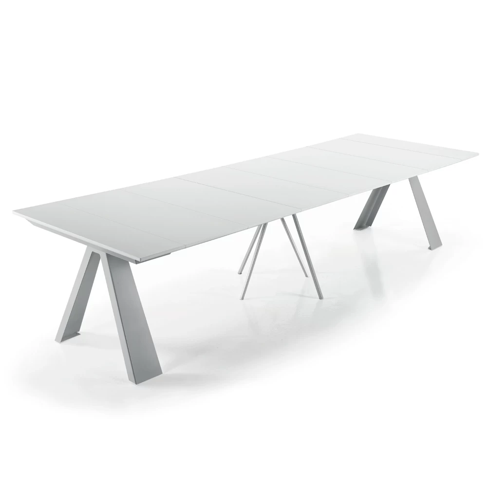 Consola de diseño extensible hasta 14 plazas en madera laminada y acero fabricado en Italia.