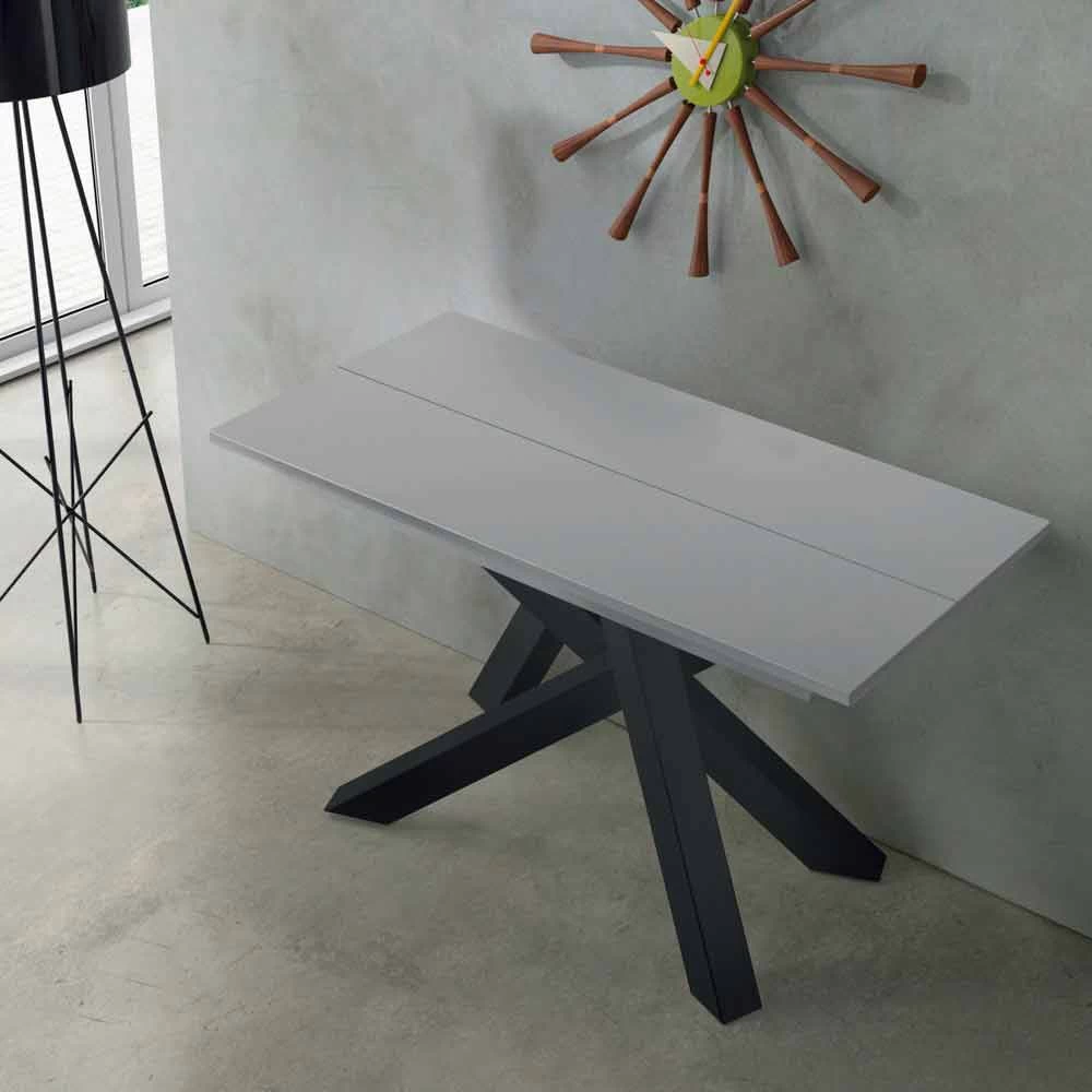 Consola extensible hasta 325 cm en madera de melamina lacada y acero de diseño fabricado en Italia.
