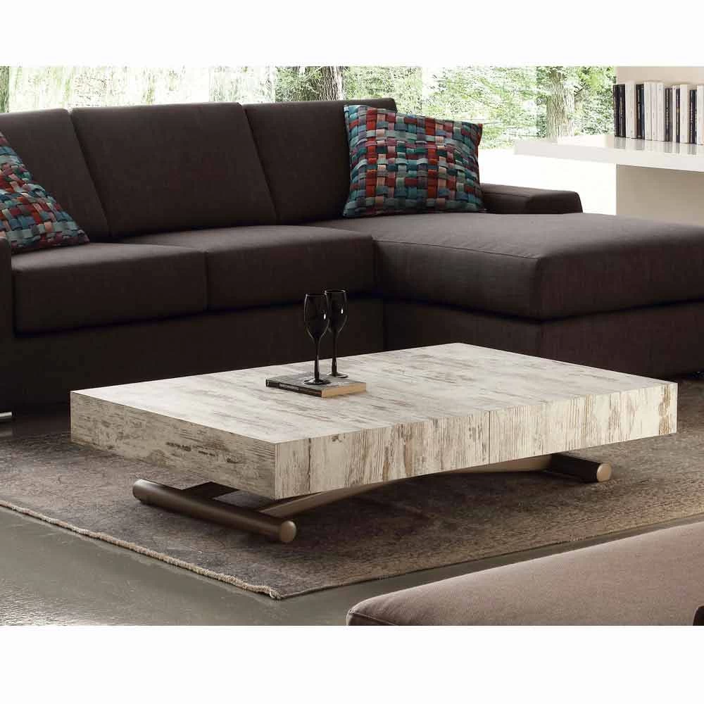 Palau se puede utilizar como mesa de centro o como práctica mesa de comedor. Estructura de metal y tablero de melamina de alta calidad, disponible en dos acabados diferentes: look cemento o look vintage. La base de la mesa no interferirá con las patas de sus invitados.