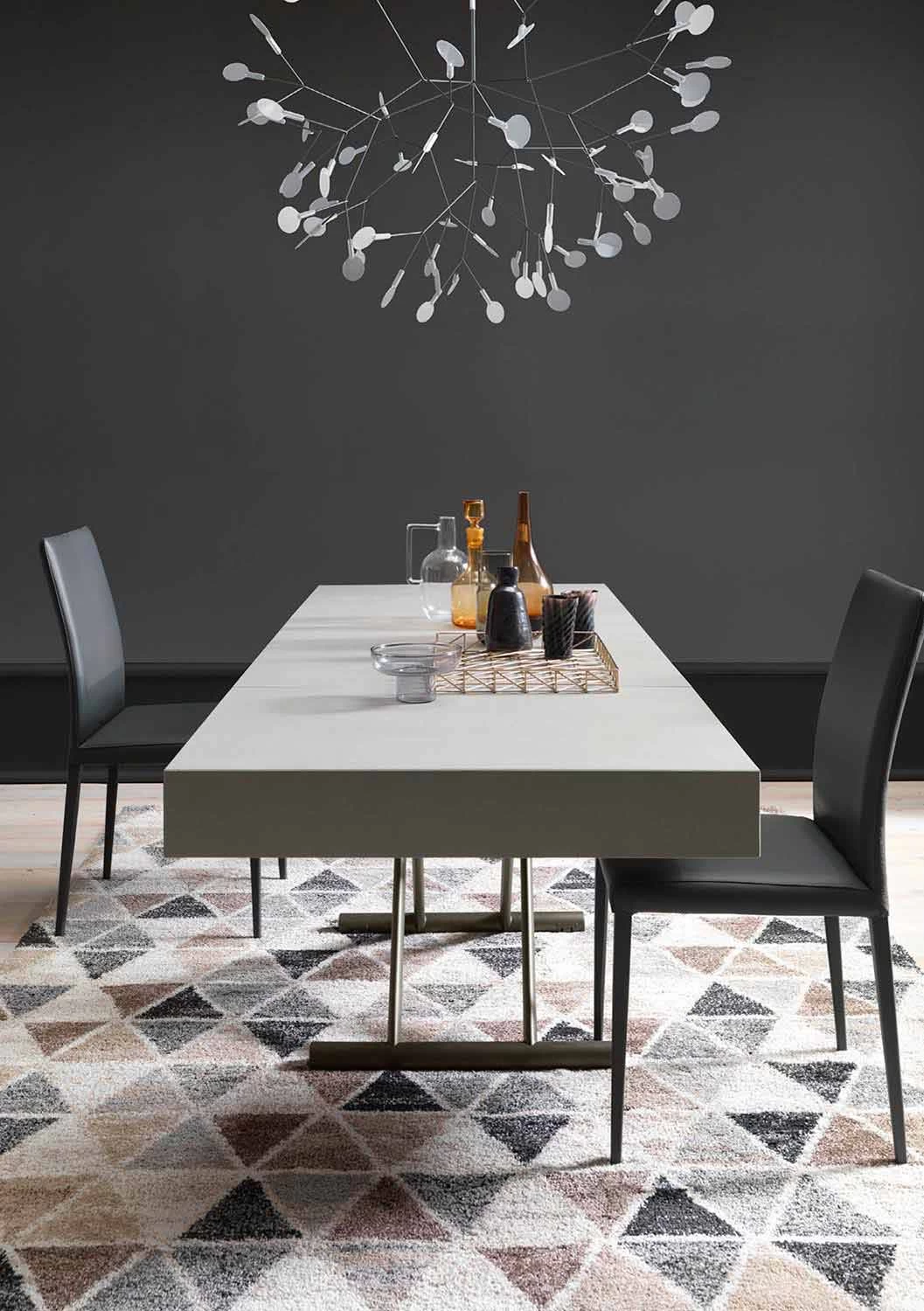 Moderna mesa de centro convertible y extensible con tapa efecto mortero y base de metal Made in Italy.