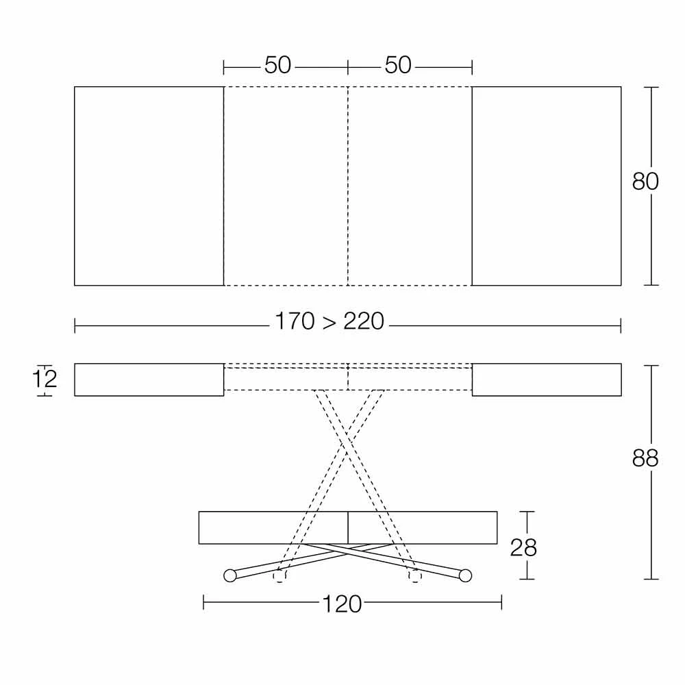 Gracias al mecanismo a gas, regulable en altura al milímetro de 28 cm a 88 cm, se transforma de mesa de centro en mesa para el comedor o la cocina.