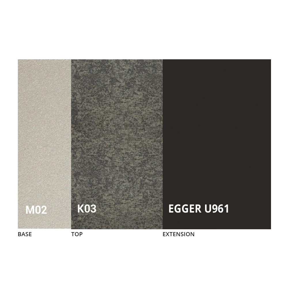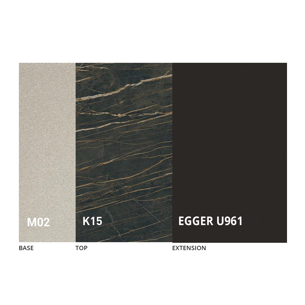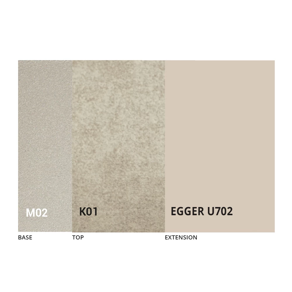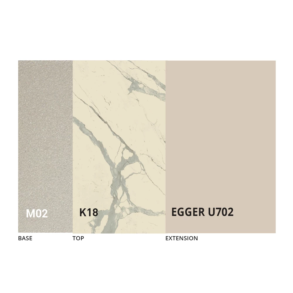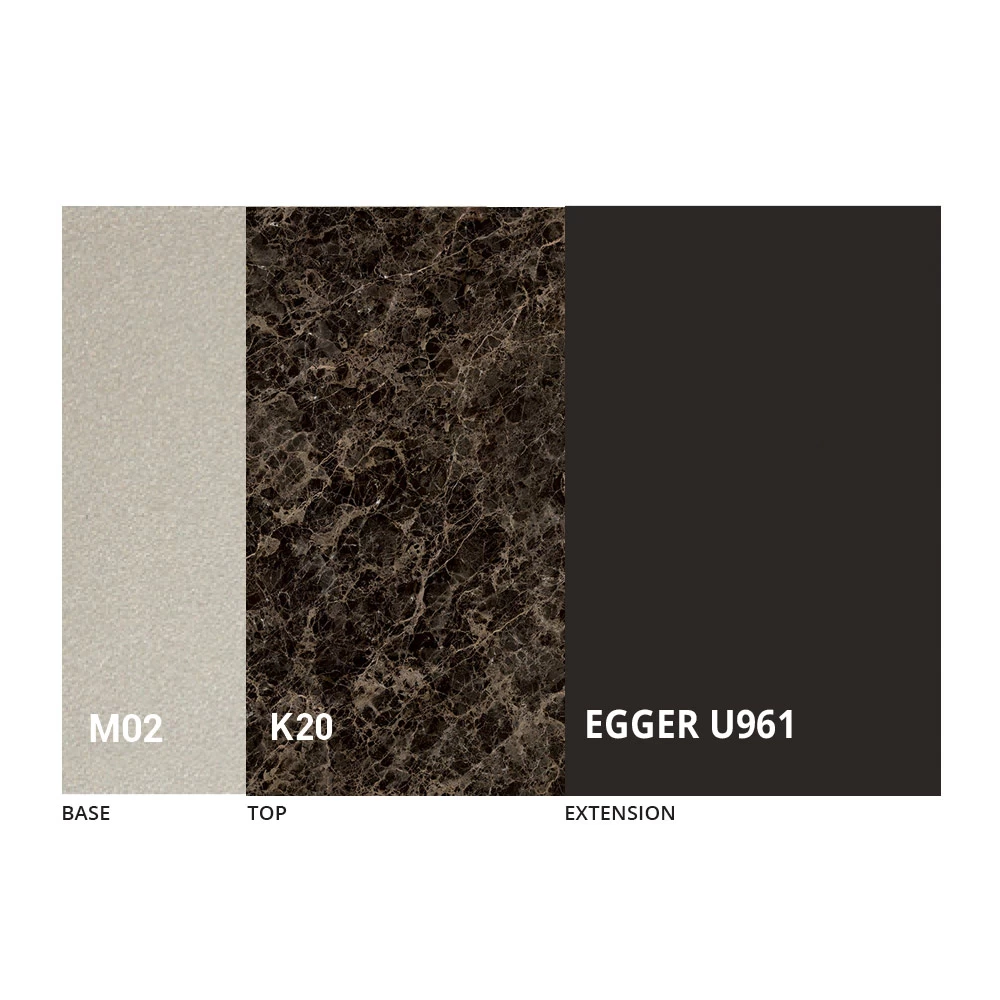 La tapa está disponible en melamina, cerámica mate, vidrio y efecto mortero en una amplia gama de acabados.