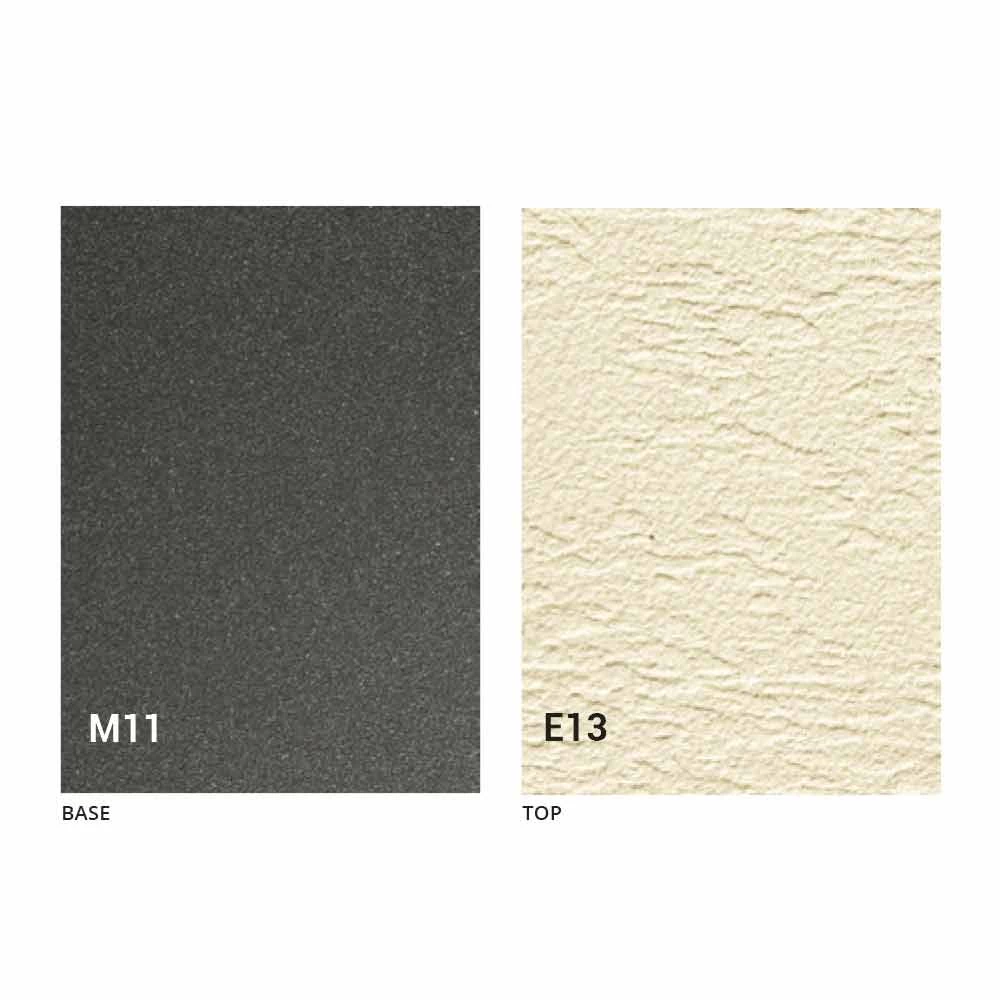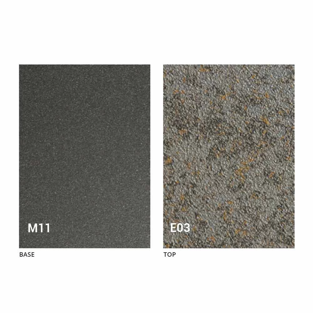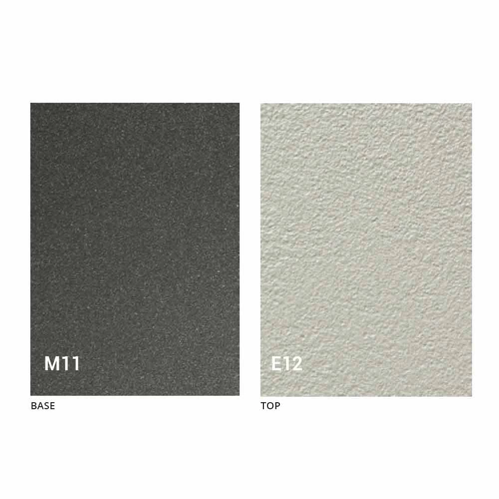 Caracterizado por una tapa de efecto mortero (espesor 12 cm) y una base de acero pintado en grafito gofrado .