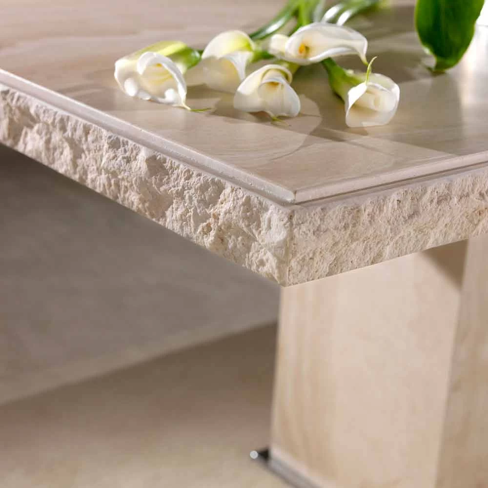 El travertino es una piedra de color crema y es sólida y duradera. Acabado mate. Se caracteriza por una fuerte resistencia a los agentes atmosféricos y químicos y también a las variaciones de temperatura.