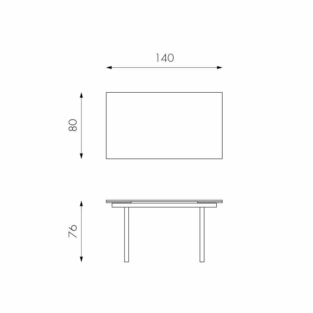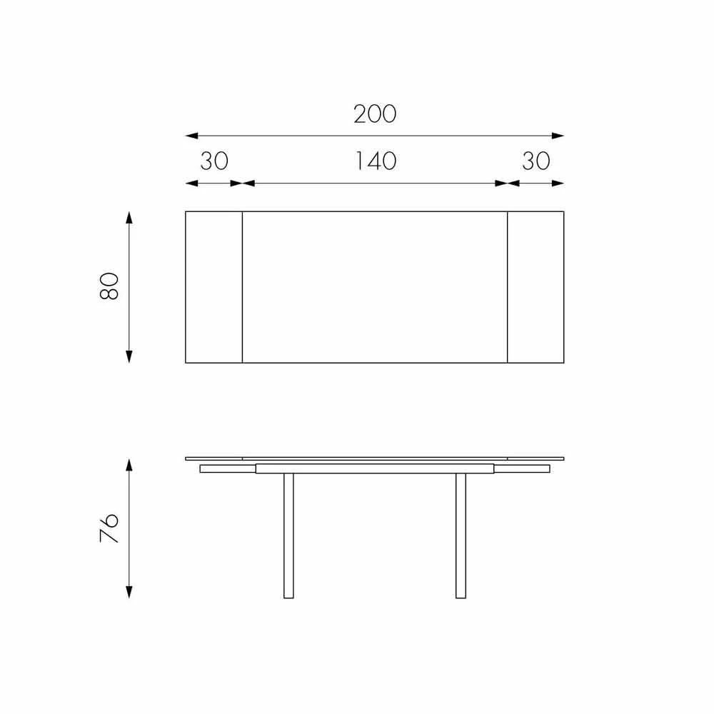 Nardo es una mesa extensible hasta 200 cm con dimensiones: l.140/200 x p.80 x h.76 cm.