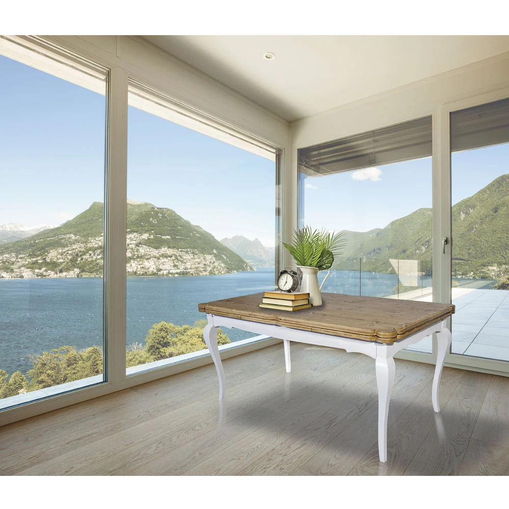 Mesa extensible de interior en abeto nórdico con esquinas en forma de Made in Italy.