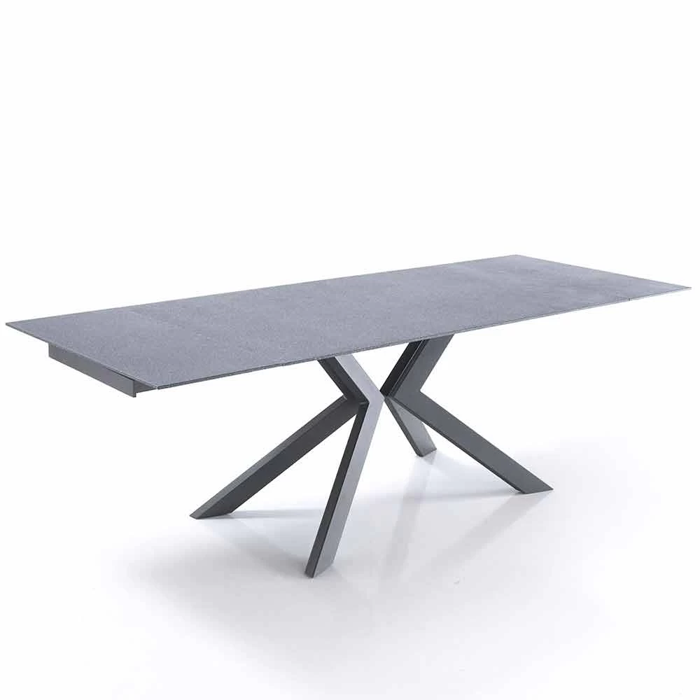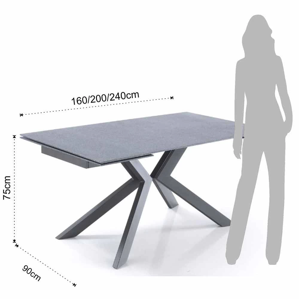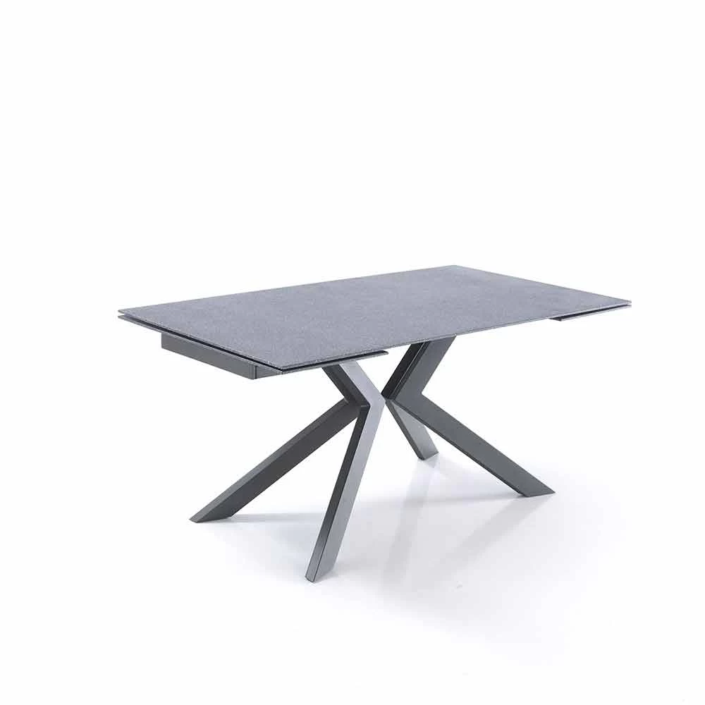 - tapa de cristal (grosor 8 mm) con acabado de piedra y base de metal pintada en antracita mate;