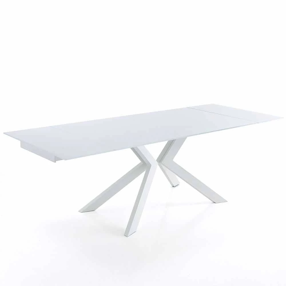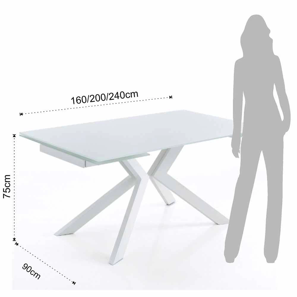 - Tapa de cristal templado blanco (grosor 10 mm) y base de metal pintado de blanco.