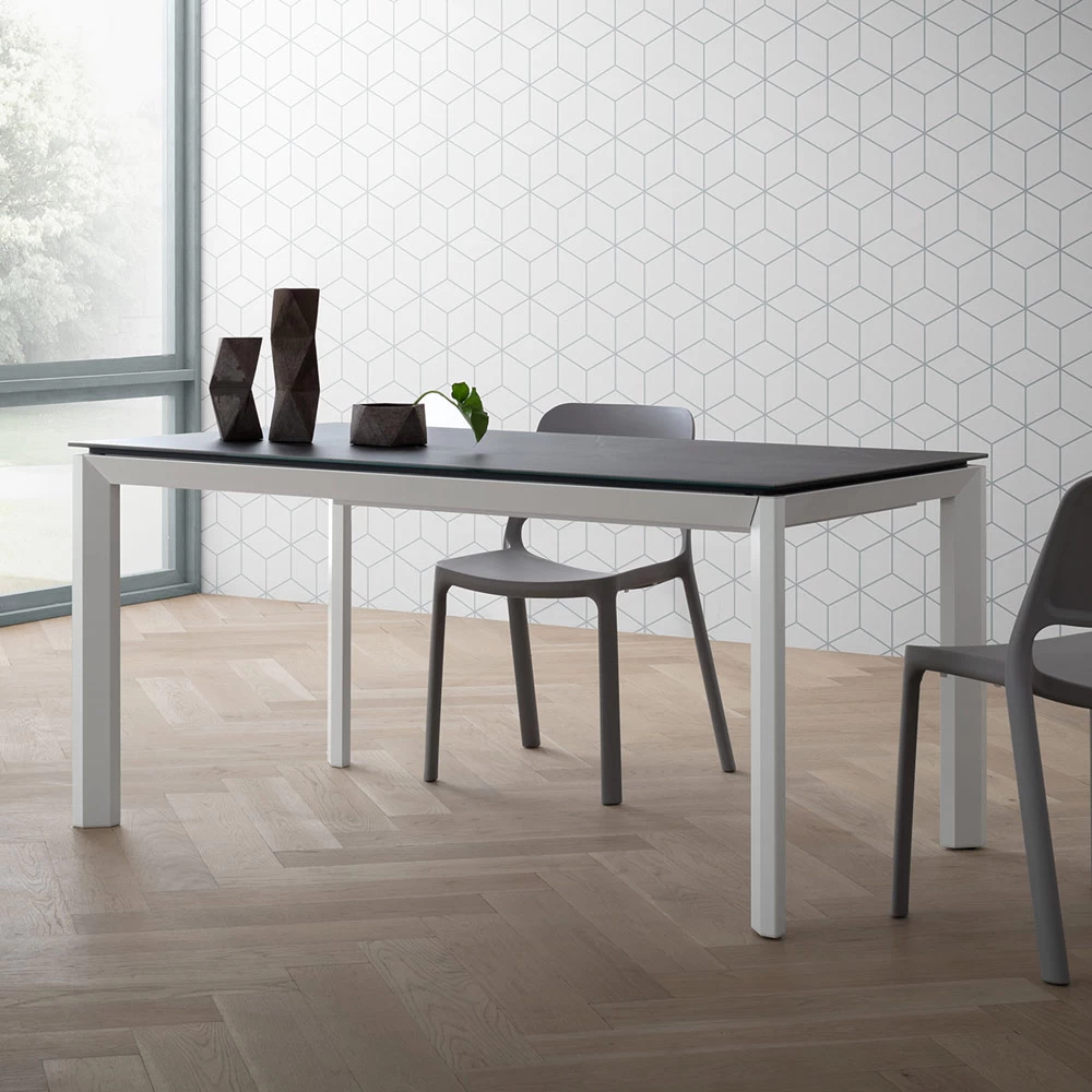 Mesa de comedor extensible hasta 240 cm en cerámica laminam y aluminio Made in Italy.
