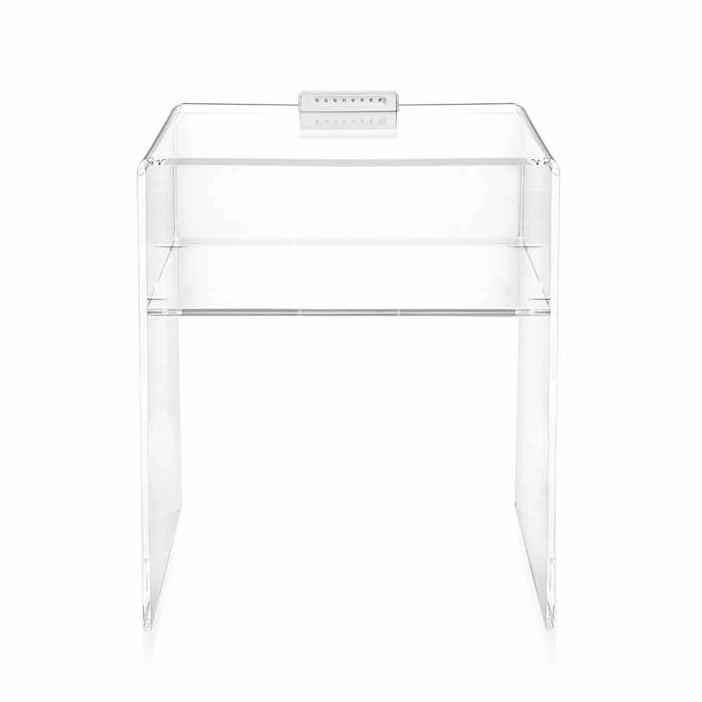 Un «toque» de luz: solo tócalo y la práctica mesita de noche Adelia hecha de plexiglás de PMMA 100% de polímero virgen transparente, ilumina e ilumina la habitación. La luz LED incorporada es extraíble; la batería es de litio y el cable de alimentación de la pared está incluido. La luz se enciende y apaga simplemente tocando el cuerpo luminoso. El brillo y el brillo se mantienen constantes y sin cambios a lo largo del tiempo. El plexiglás de PMMA de polímero virgen utilizado es no tóxico, hipoalergénico, inodoro y antibacteriano. 100% reciclable Diseñado, diseñado y fabricado en Italia, con materiales italianos.
