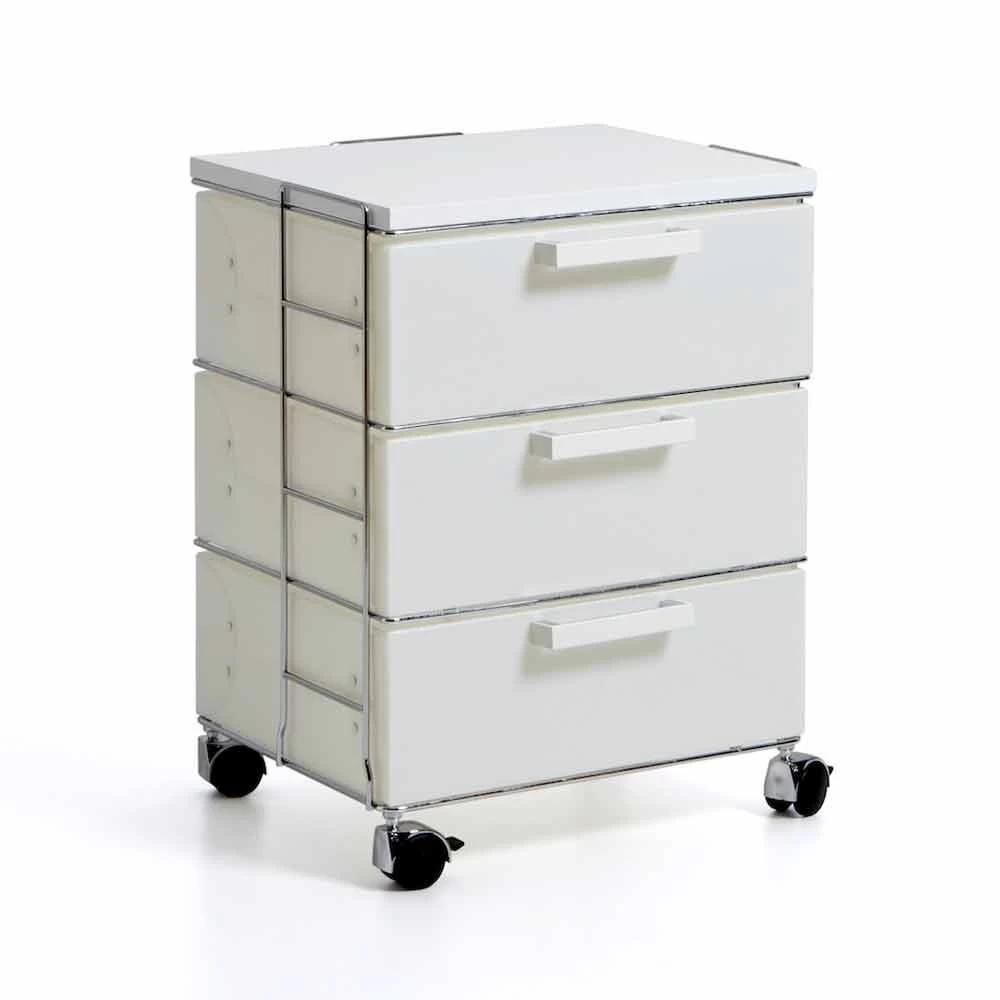 Cajón cromado alambre de metal con 3 cajones en perlas de polipropileno blanco, TOP en MDF (tablero de fibras de densidad media, tablero de fibras de densidad media) pintadas de color blanco.