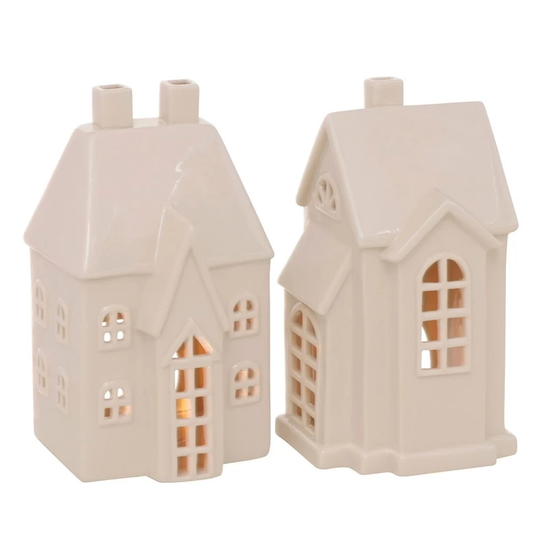 Portavelas en forma de casa fabricado en cerámica de 20cm de altura disponible en dos modelos diferentes a elegir. Coloca tus velas con gran personalidad. Perfecto para colocar en tu entrada nórdica o en cualquier rinconcito vacío que necesita un toquecito de luz. ¡Impresiónate con su efecto acogedor!