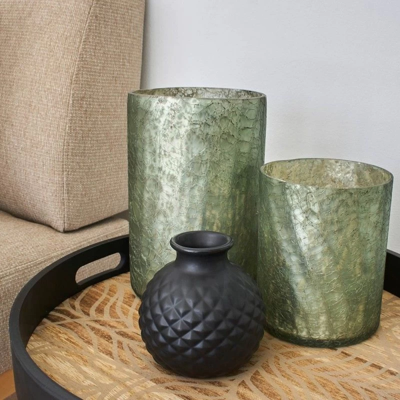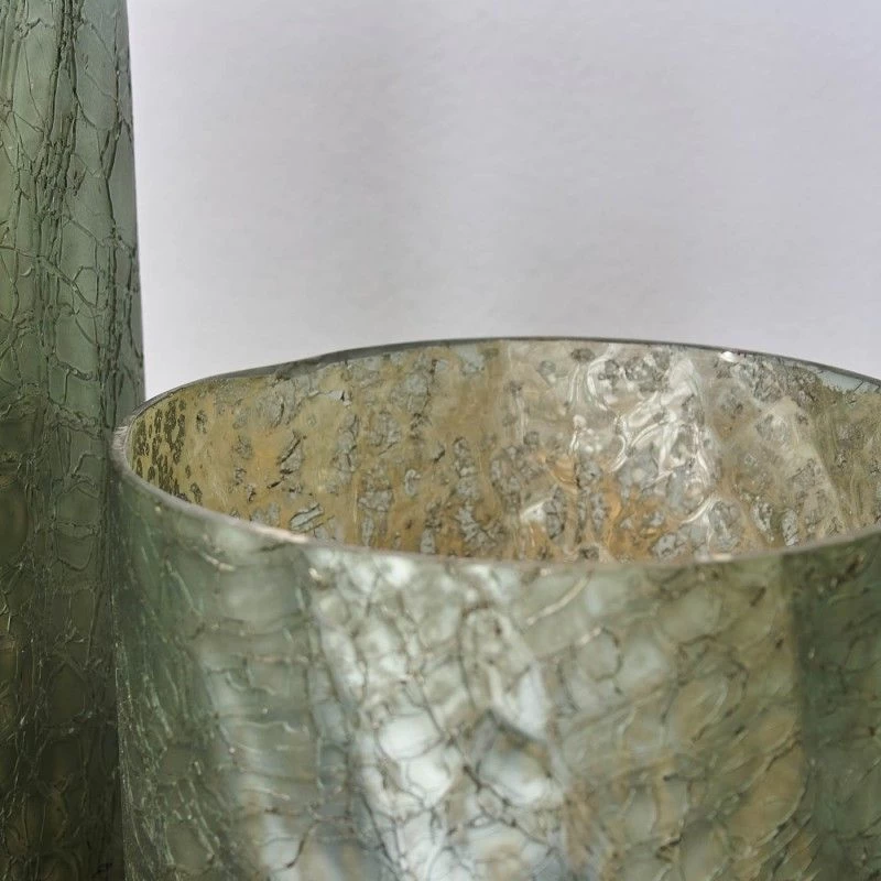 Set de dos portavelas fabricados en vidrio de color verde de diferentes tamaños, disponibles en dos modelos tonos diferentes a elegir. Haz que tu rincón brille con estos portavelas de estilo exótico y bohemio. ¡Te encantarán!