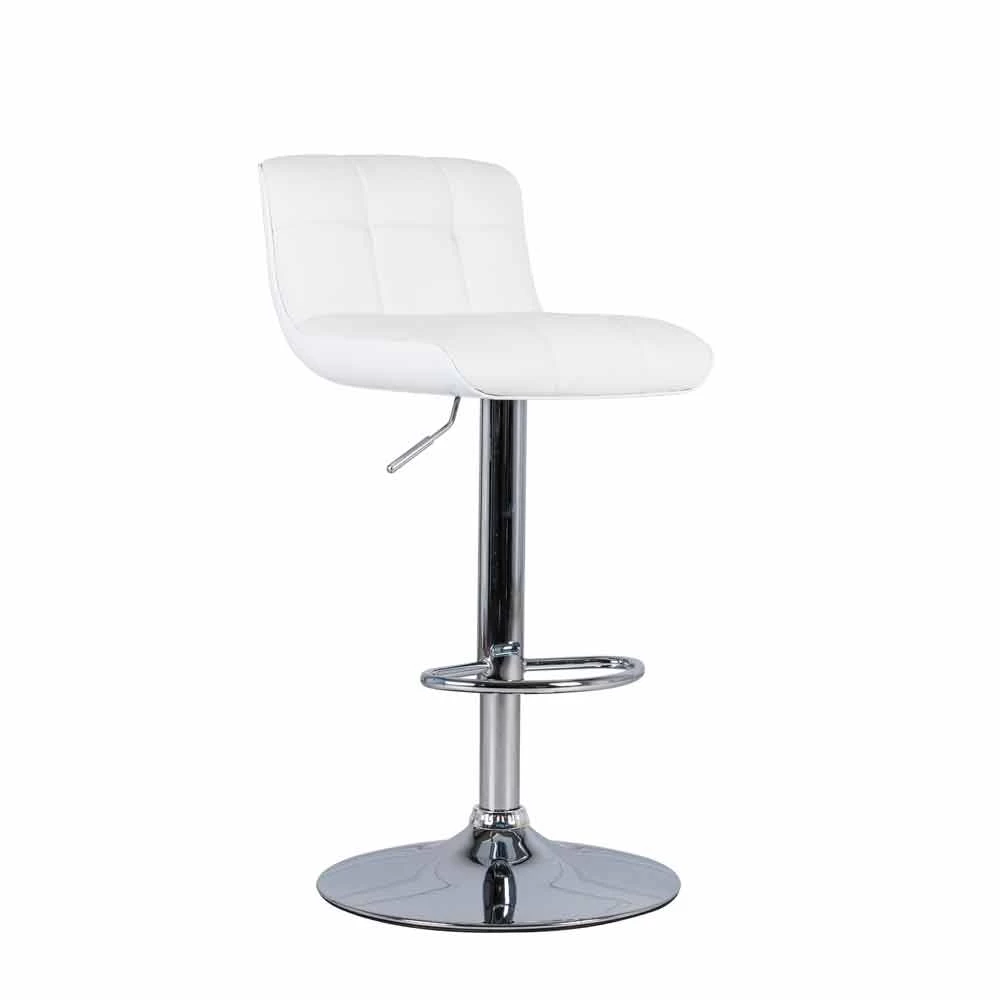 Taburetes con base de metal cromado y asiento acolchado en pvc. Disponible en los siguientes colores: blanco, gris, rojo, gris tórtola.