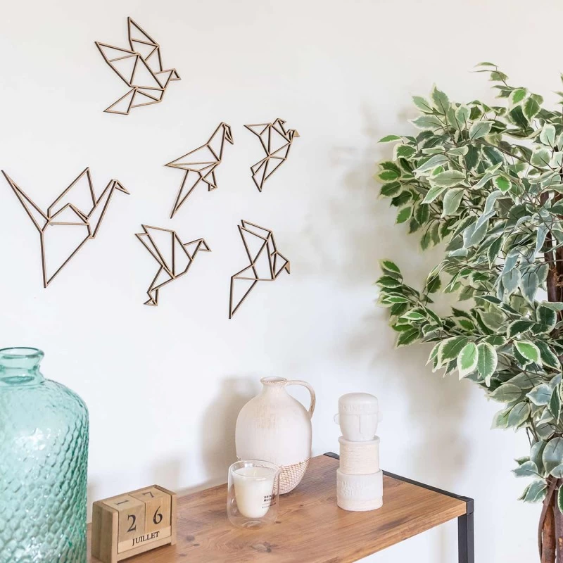 Set de 6 pájaros de fabricación propia disponibles en mdf chapado en roble o MDF pintado. Tanto si buscas realzar una sala de estar, un dormitorio o incluso un rincón de trabajo, estos pájaros origami añaden un toque poético y sofisticado a cualquier espacio. Diseñados para inspirar y elevar el espíritu de quienes la contemplan.