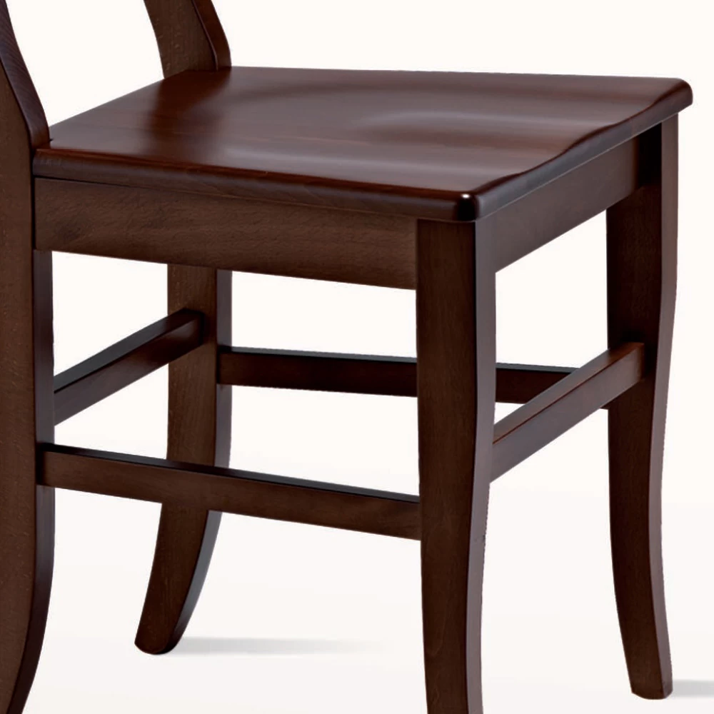 Esta silla de cocina presenta un diseño sobrio con un estilo clásico y está fabricada en Italia con una resistente estructura en madera maciza de haya disponible en varios acabados.