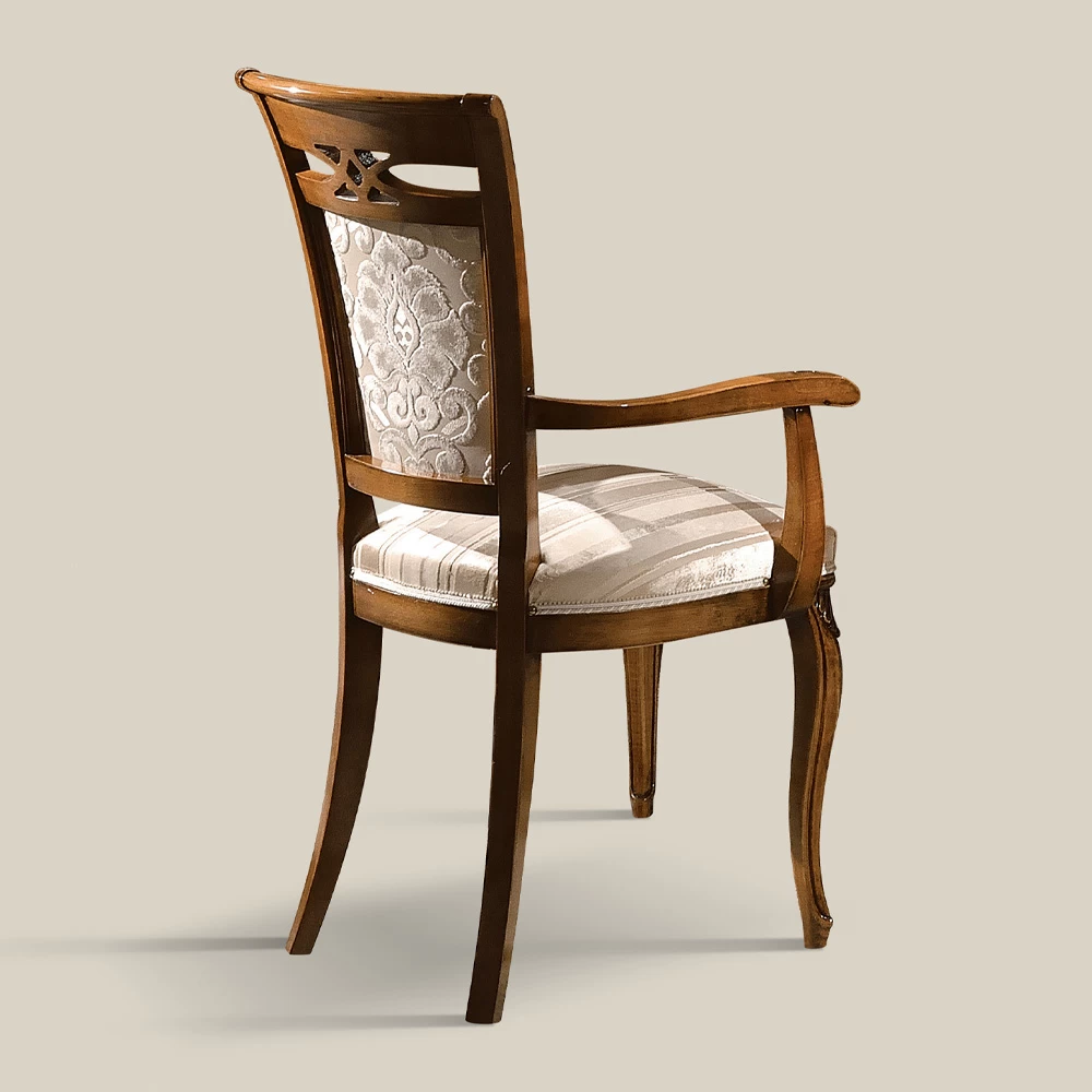 Silla de comedor de estilo clásico atemporal , perfecta para decorar con personalidad y elegancia un salón, una cocina o un comedor, disponible en la versión acabado nogal Bassano o madera blanca y plata . Esta silla tiene asiento y respaldo acolchados y tapizados en tela para adaptarse a cada necesidad ofreciendo un confort óptimo, pudiendo elegir también entre la versión con o sin reposabrazos. Un complemento único y refinado, completamente hecho en Italia y por expertos maestros artesanos , maestros del arte que terminan cada complemento con sabiduría y gusto por la elegancia. La producción se lleva a cabo utilizando materiales nobles y realizando el trabajo a mano con el máximo cuidado y profesionalismo que distingue a los productos Made in Italy .