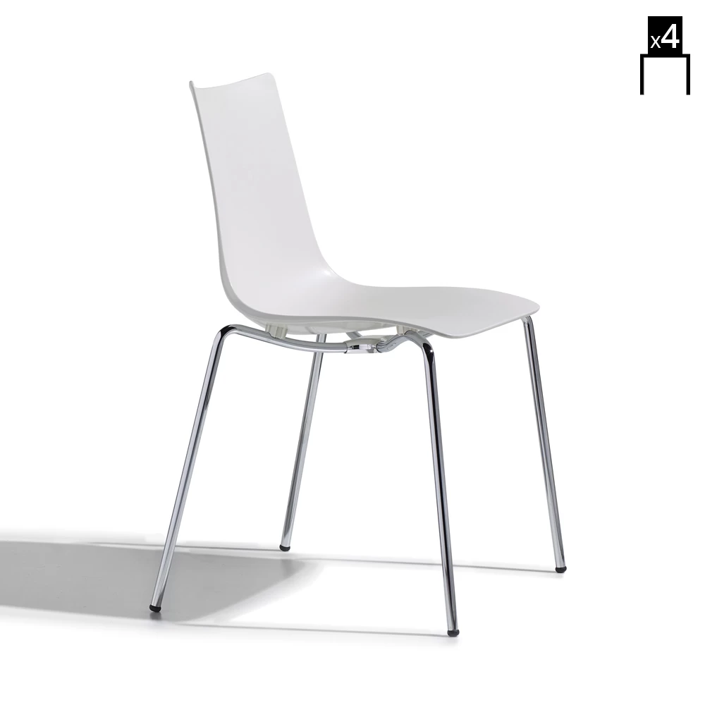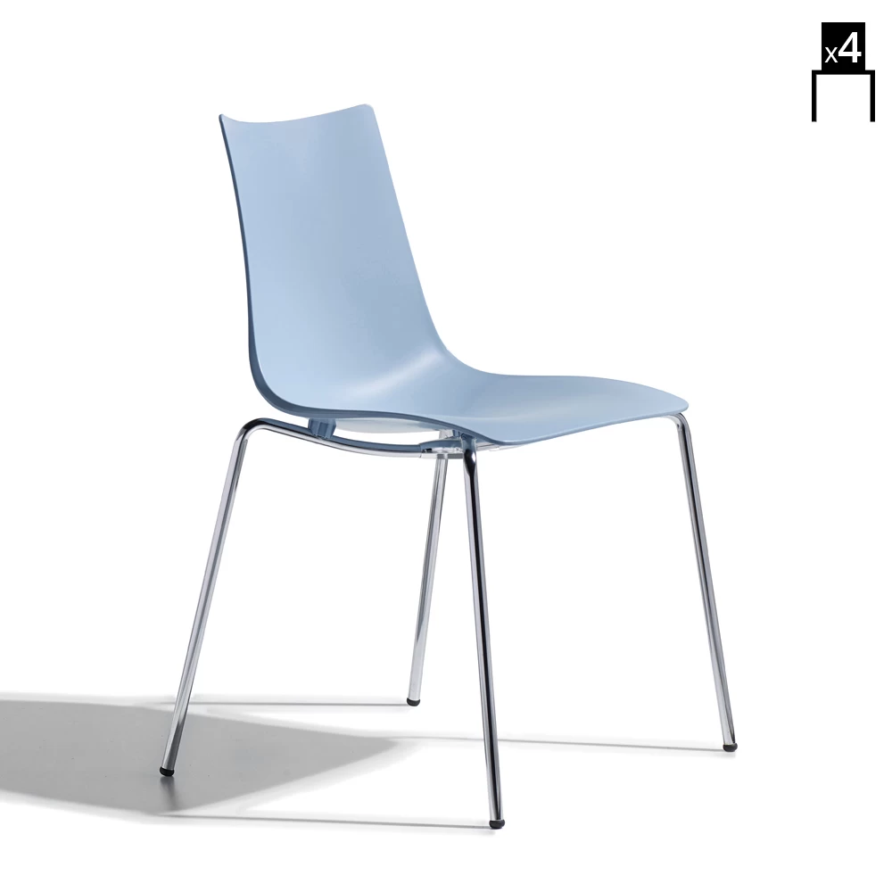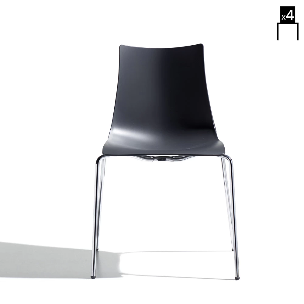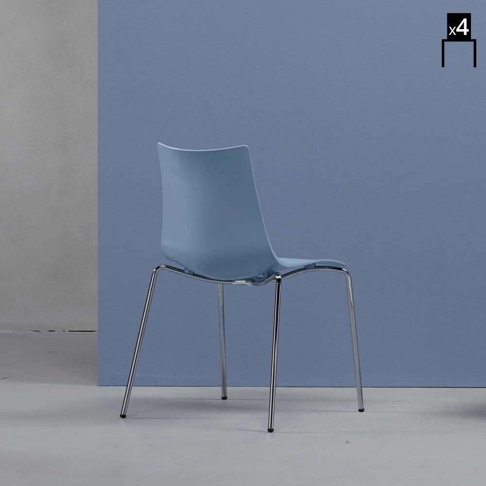 de cuatro fantásticas sillas con un diseño sencillo, lineal y fascinante. Cada silla de interior es adecuada para cualquier decoración; entra con gusto en los interiores de las casas contemporáneas y ofrece un refinado elemento de contraste en espacios de estilo clásico. Producto versátil, ideal para espacios públicos, clubes, hoteles. Su versatilidad de uso se define por formas esenciales y diseño minimalista. Hermoso y también fuerte, gracias a su estructura en acero tubular cromado de Ø16 mm y una carcasa de tecnopolímero con superficie exterior brillante e interior mate resistente a los arañazos.