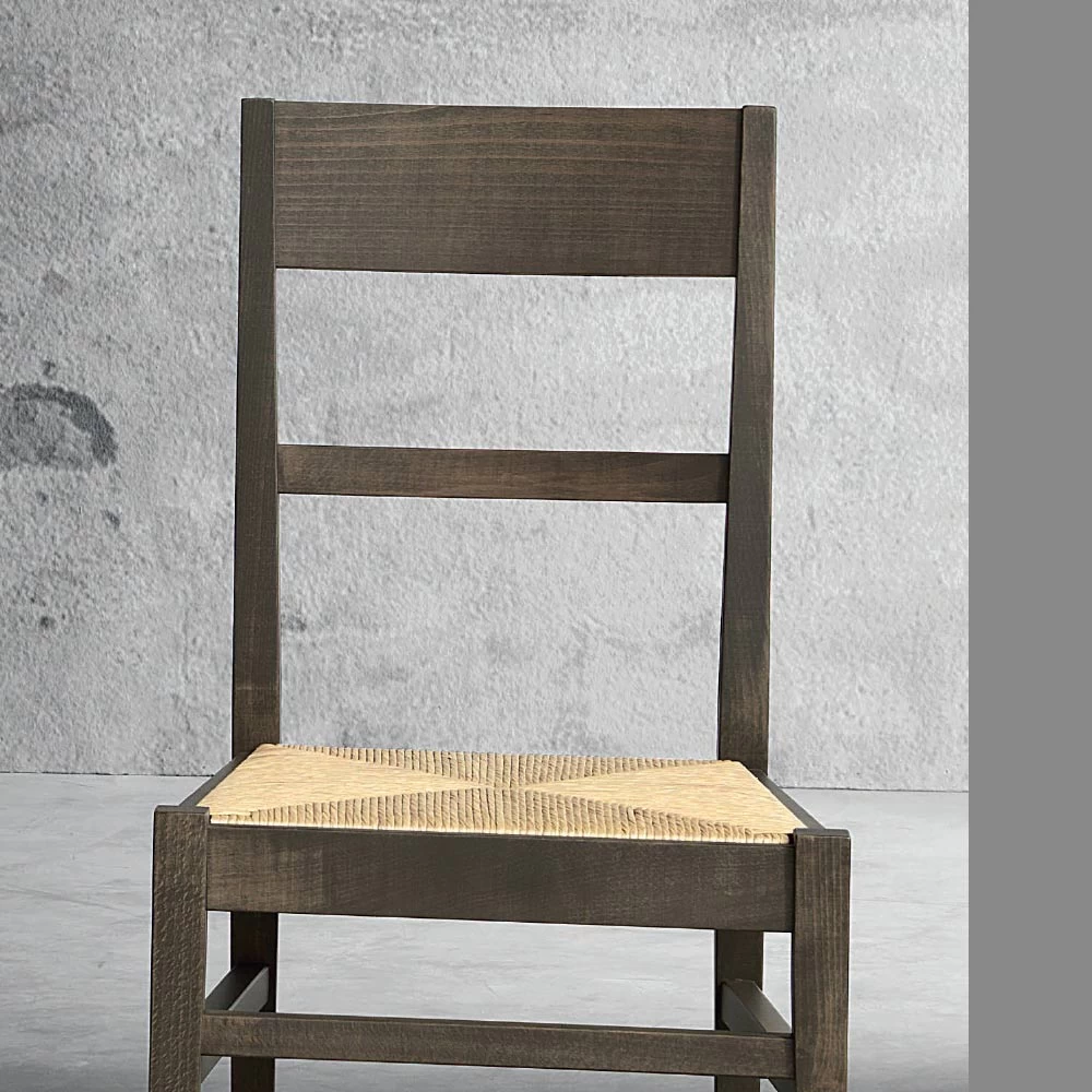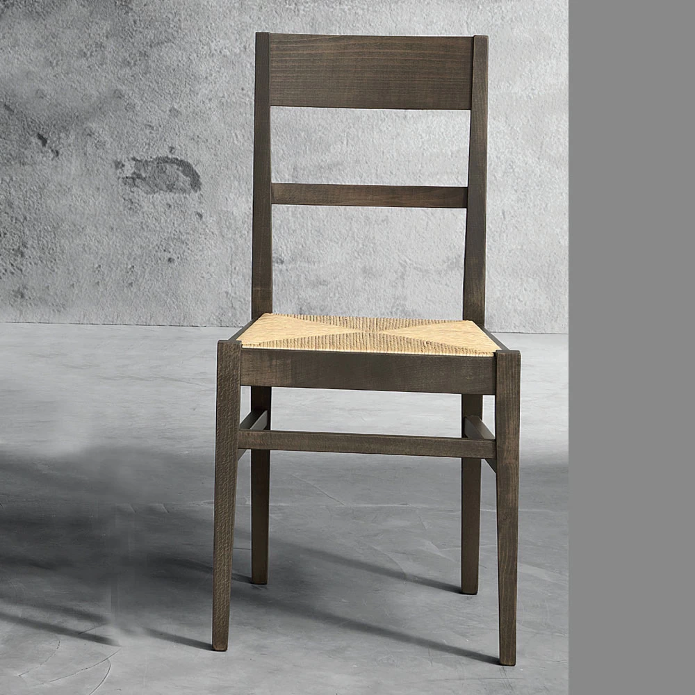 Silla de cocina en madera de haya y paja fabricada en Italia.