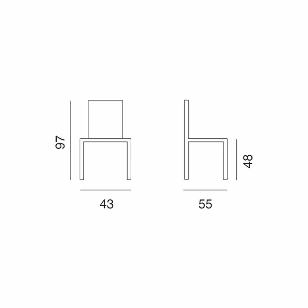 Medidas L 43 P 55 H 97 cm, altura del asiento 48 cm
