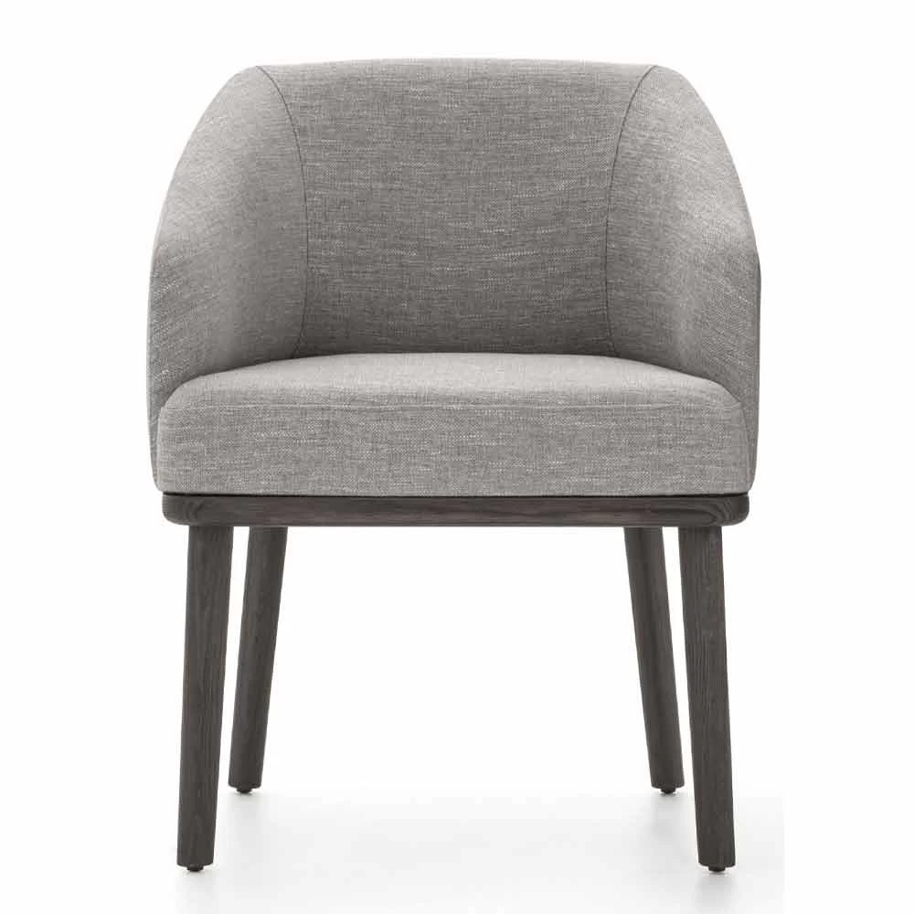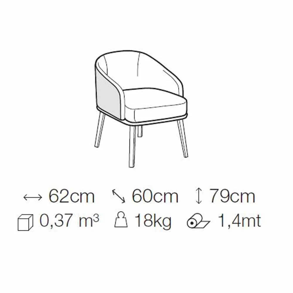 Acogedora silla de comedor fabricada en Italia con estructura de madera acabada en eucalipto y estructura interna en madera contrachapada acolchada con espuma de poliuretano indeformable y revestida con tela por dentro y piel por fuera ( no desenfundable ).